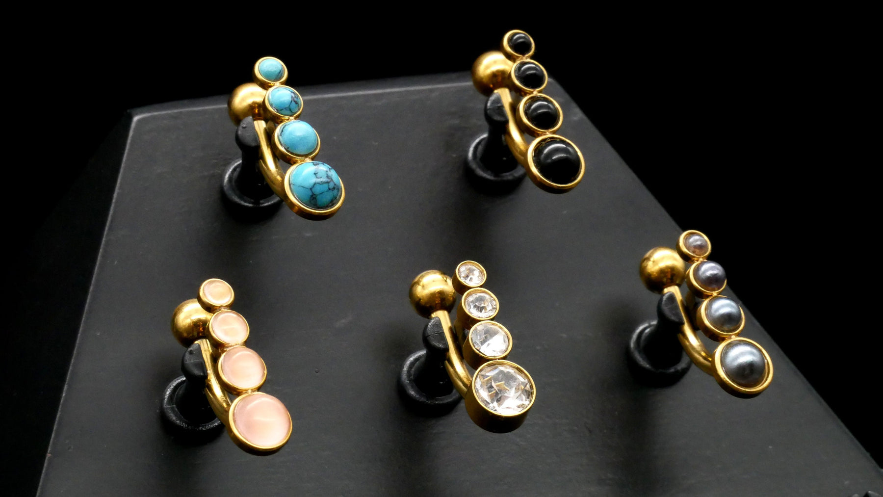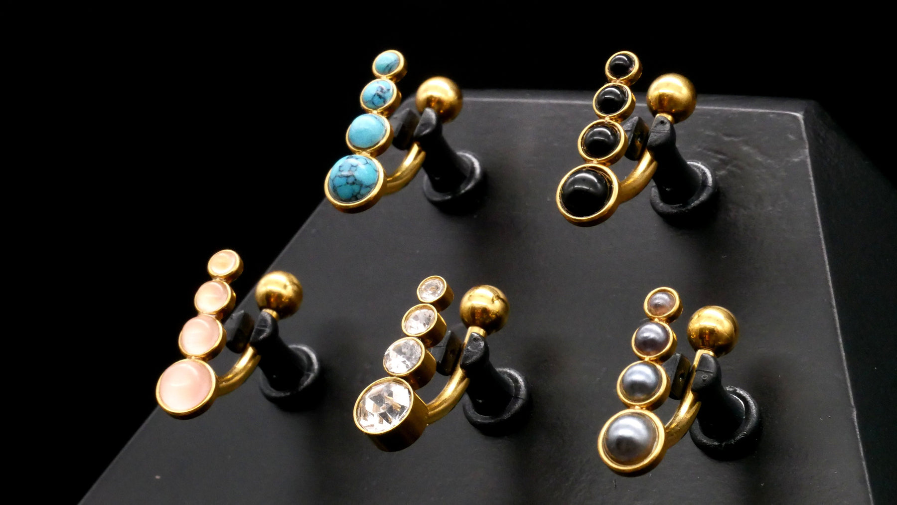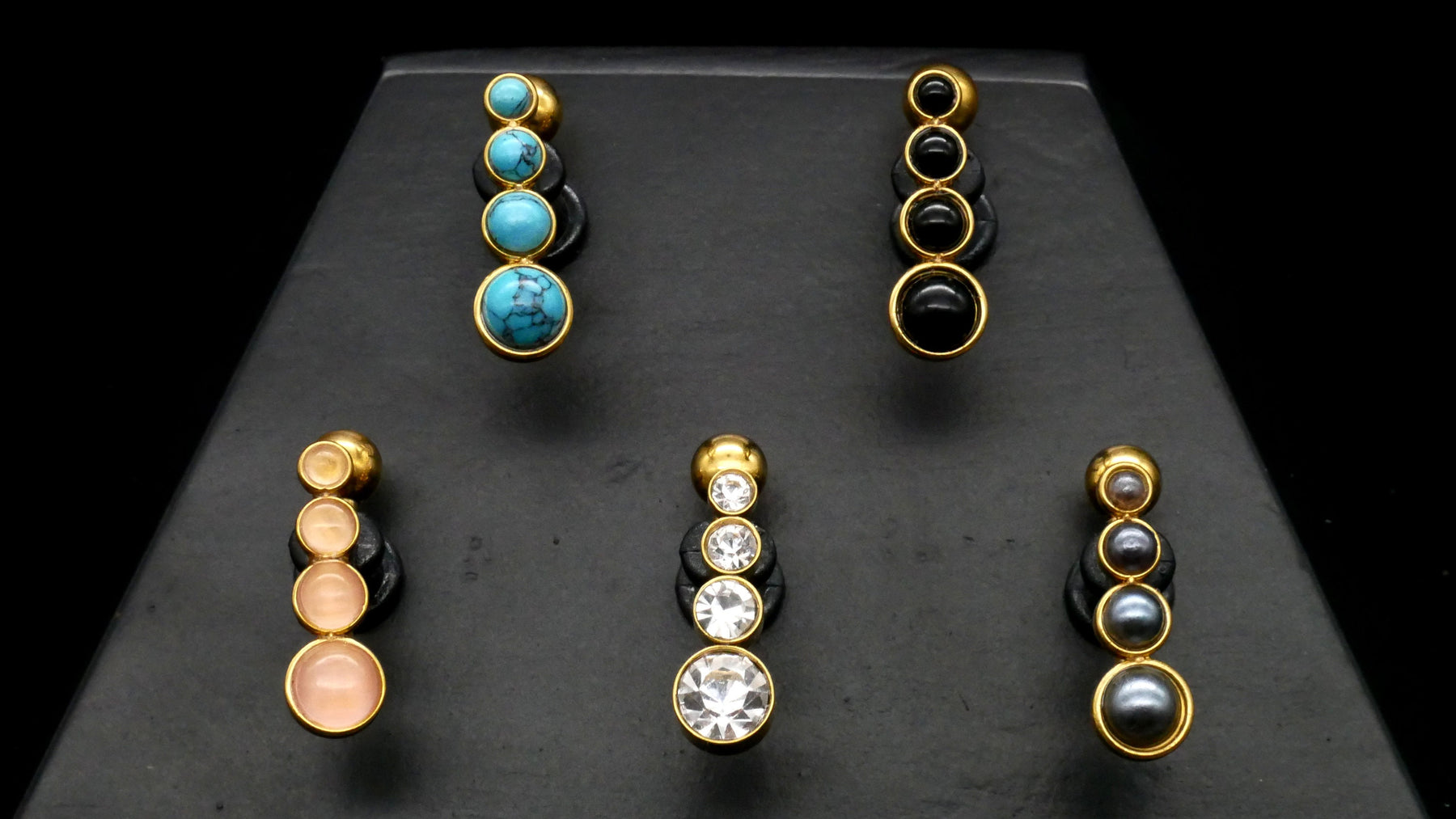 Kleine Piercings werden in schlichten, schwarzen Plastik- oder Papiertütchen geliefert, während mittelgroßer und großer Schmuck in edlen, schwarzen Faltschachteln verpackt wird.