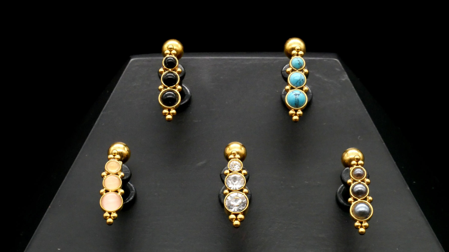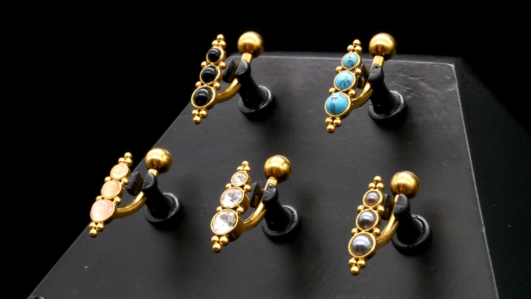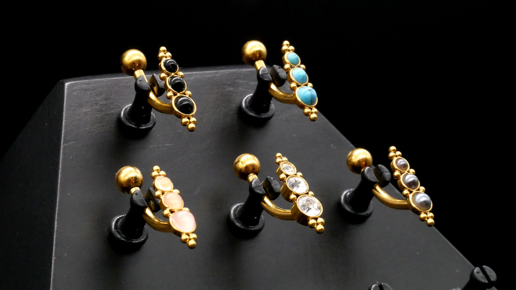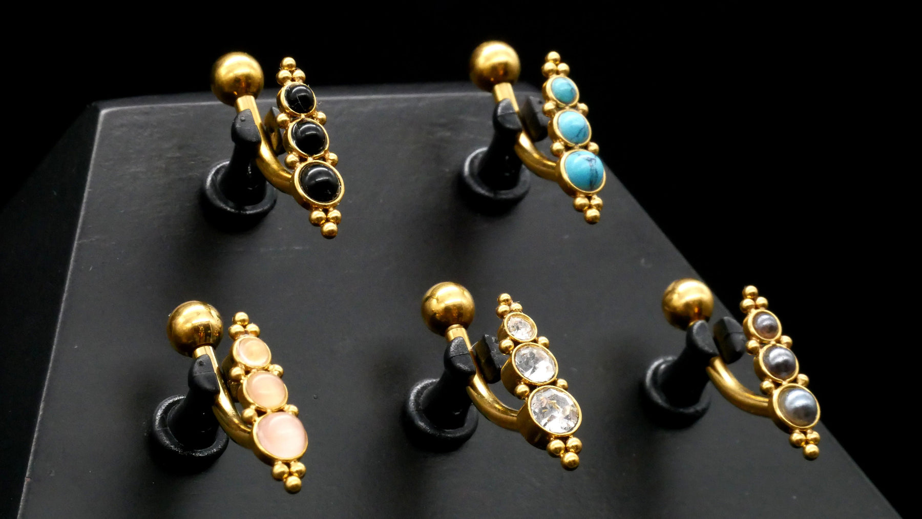 Kleine Piercings werden in schlichten, schwarzen Plastik- oder Papiertütchen geliefert, während mittelgroßer und großer Schmuck in edlen, schwarzen Faltschachteln verpackt wird.
