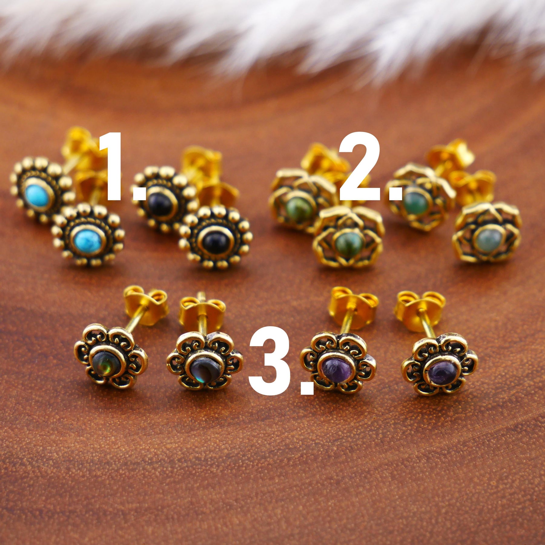 💎 Du hast die Wahl! Die Ohrstecker sind in drei wunderschönen Varianten erhältlich und mit verschiedenen echten Schmucksteinen verziert: