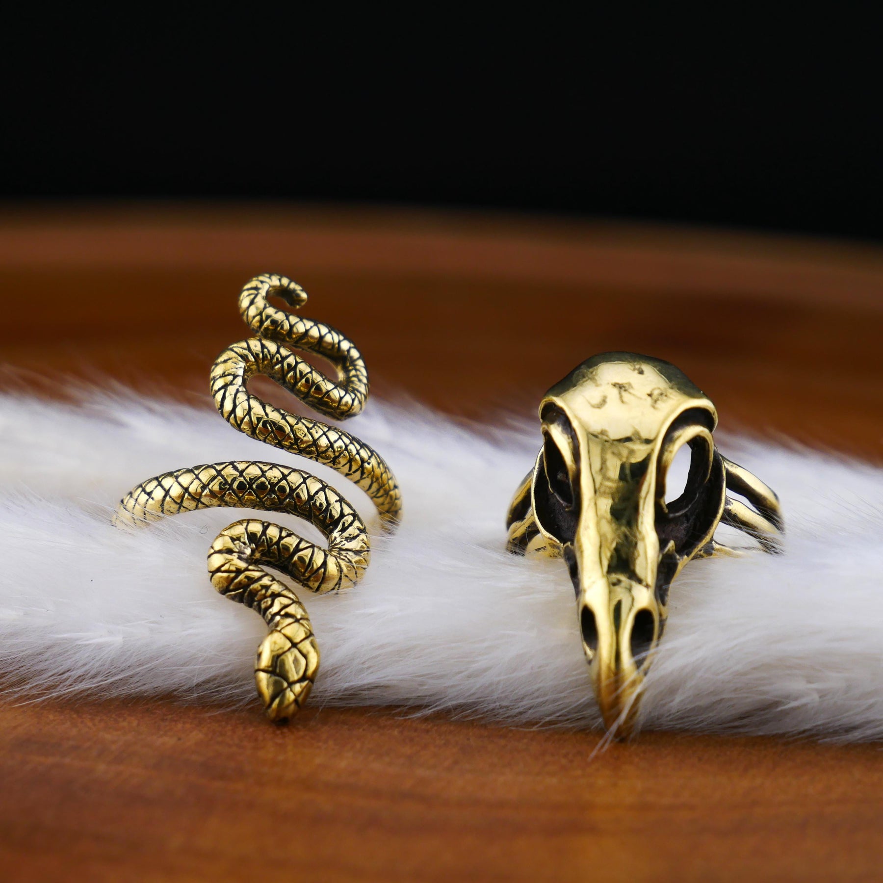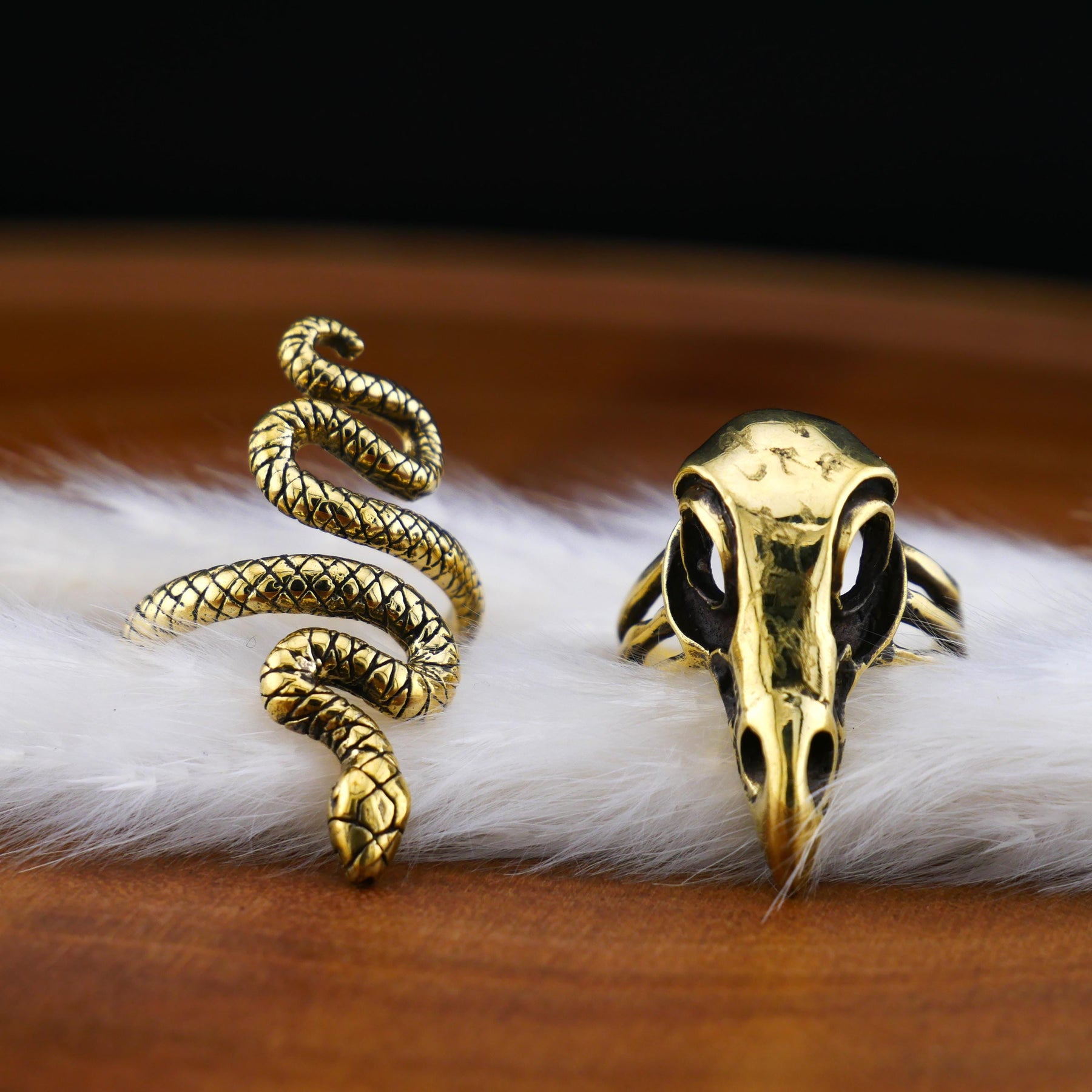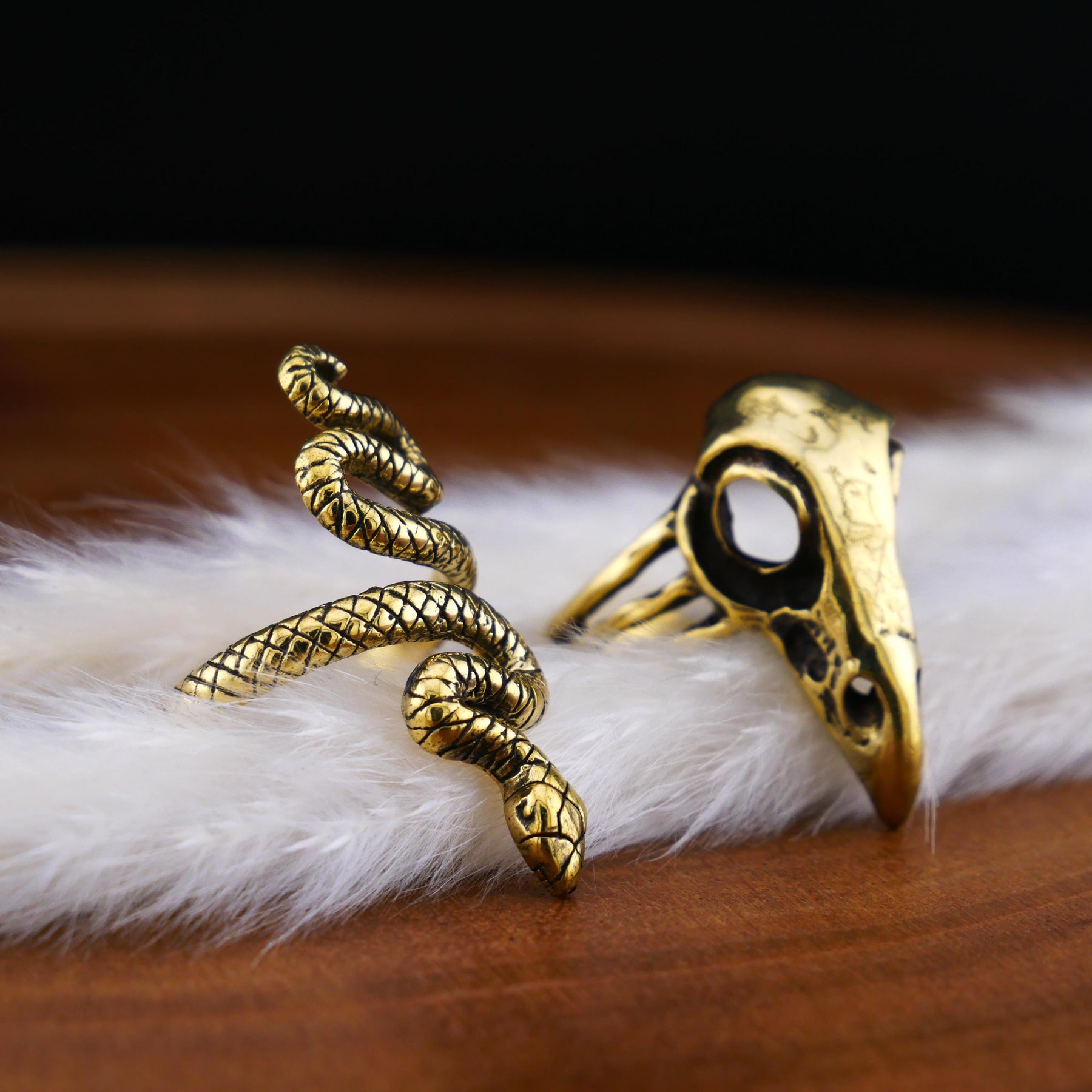 Ring Unisize aus Messing Schlange Raabe - Q6