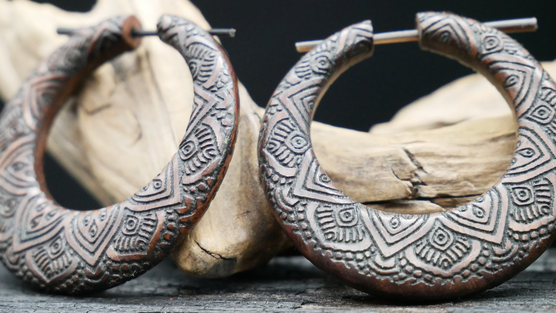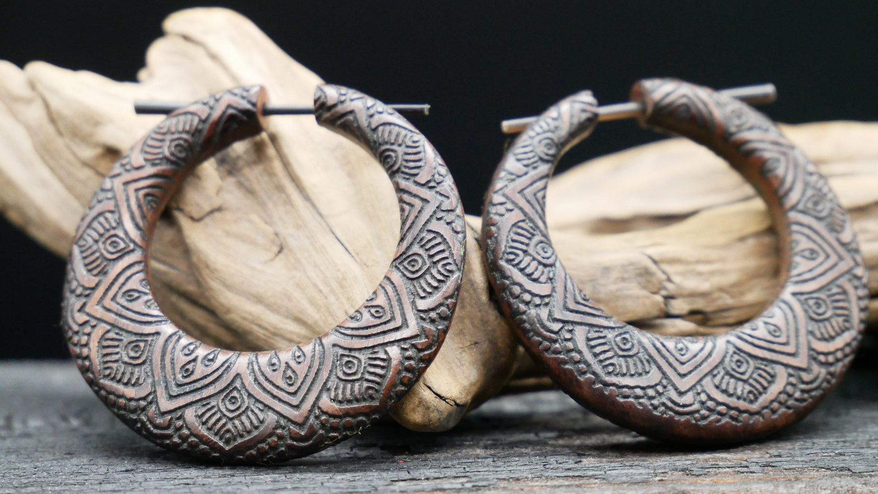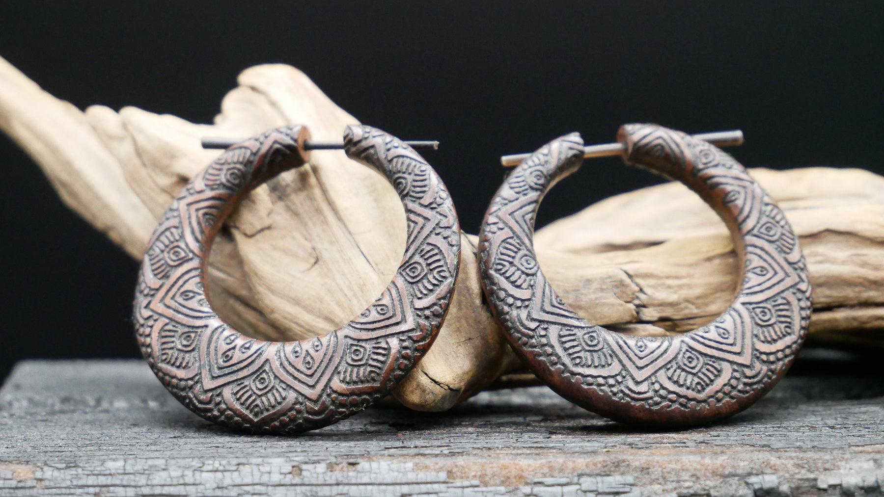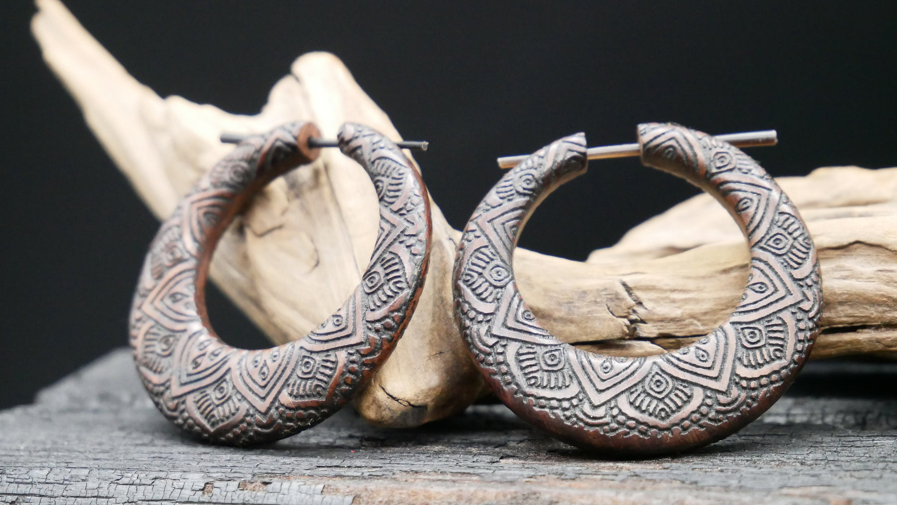 Ohrringe, Creolen aus Holz mit Gravur - AA-7