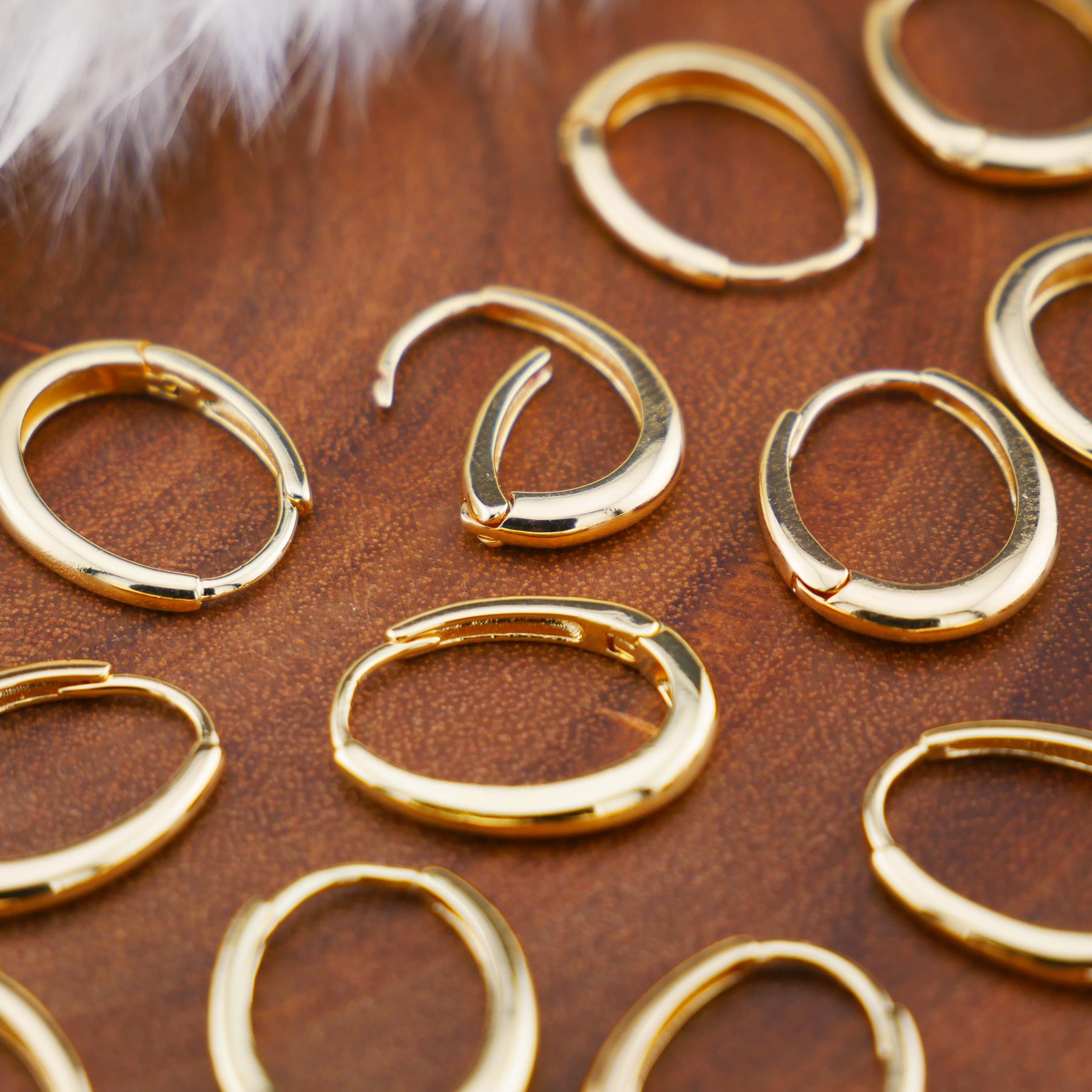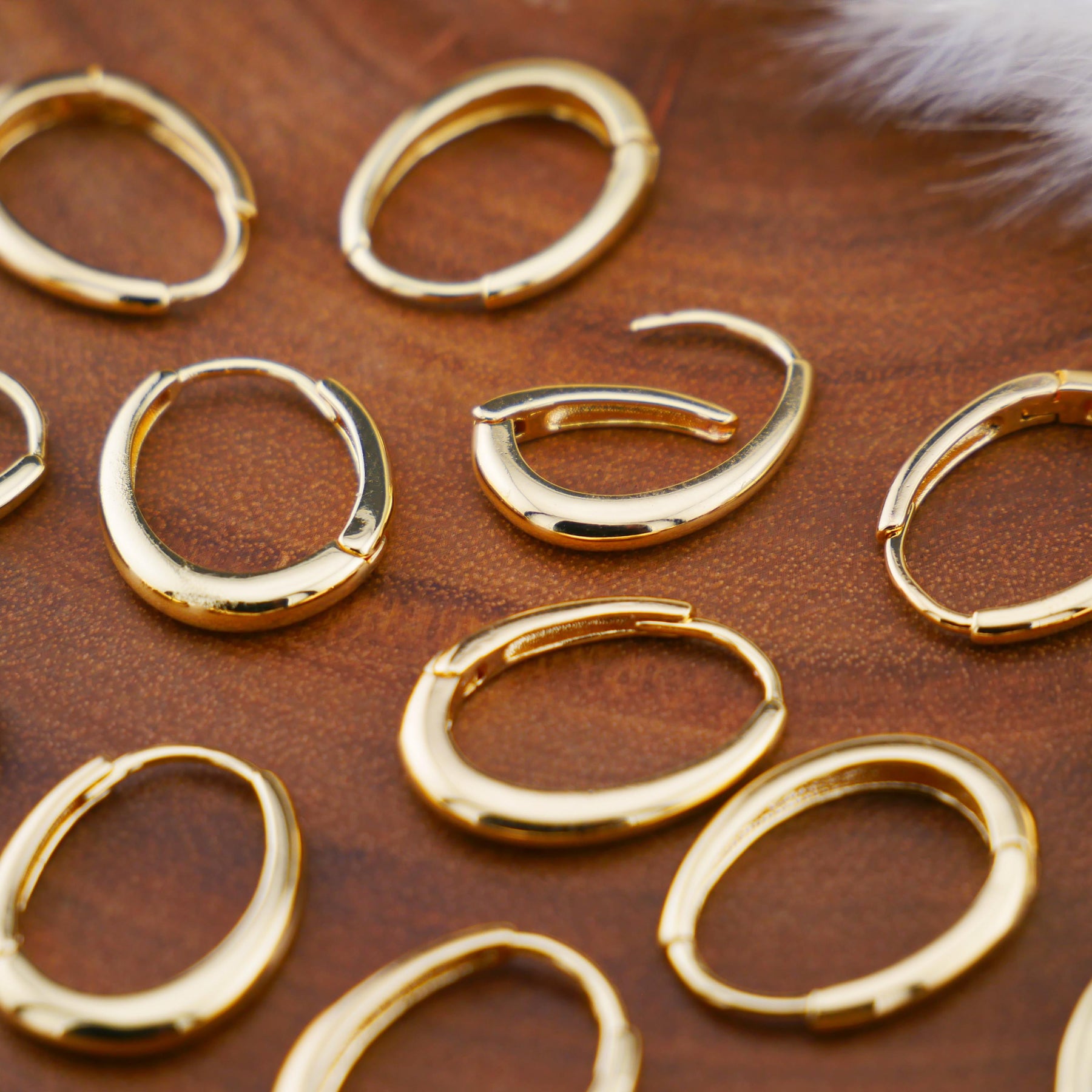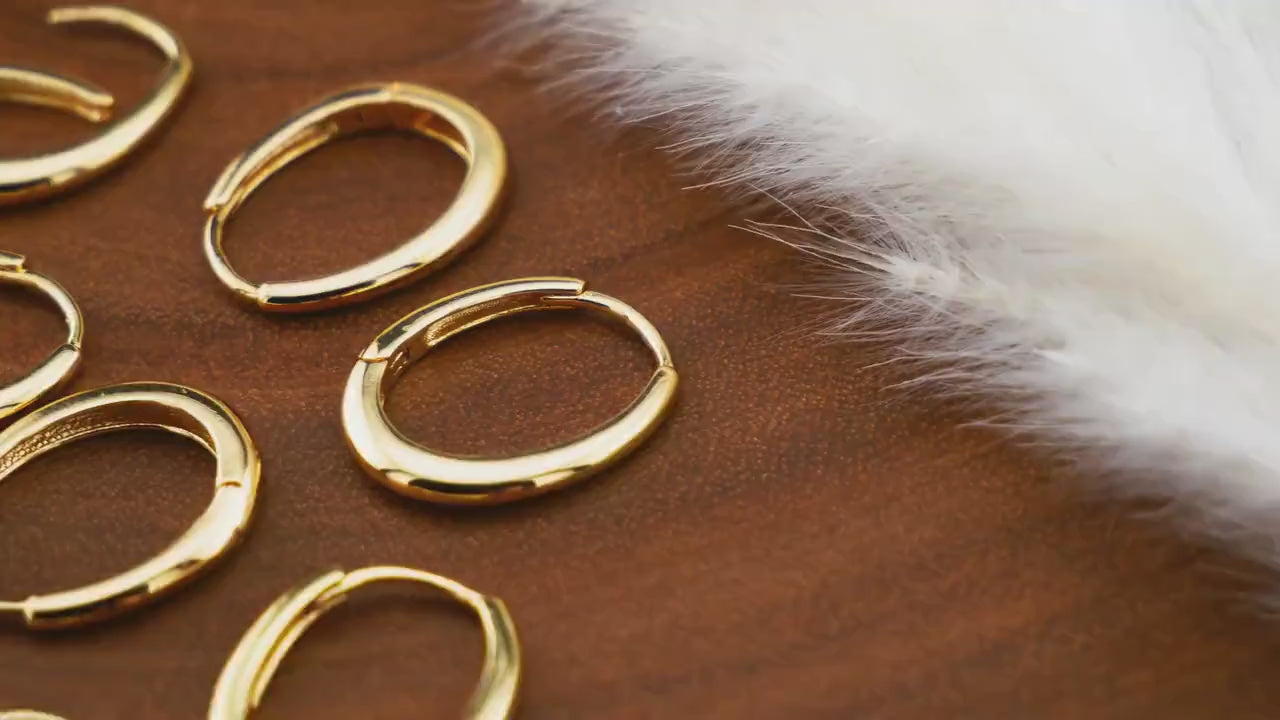 Schlichte, elegante Ohrringe aus goldfarbenem Chirurgenstahl mit praktischem Klickverschluss. Leicht, hautfreundlich und alltagstauglich. Steg: 1,0 mm, Größe: 14 x 18 mm - zeitlos schön und angenehm zu tragen.