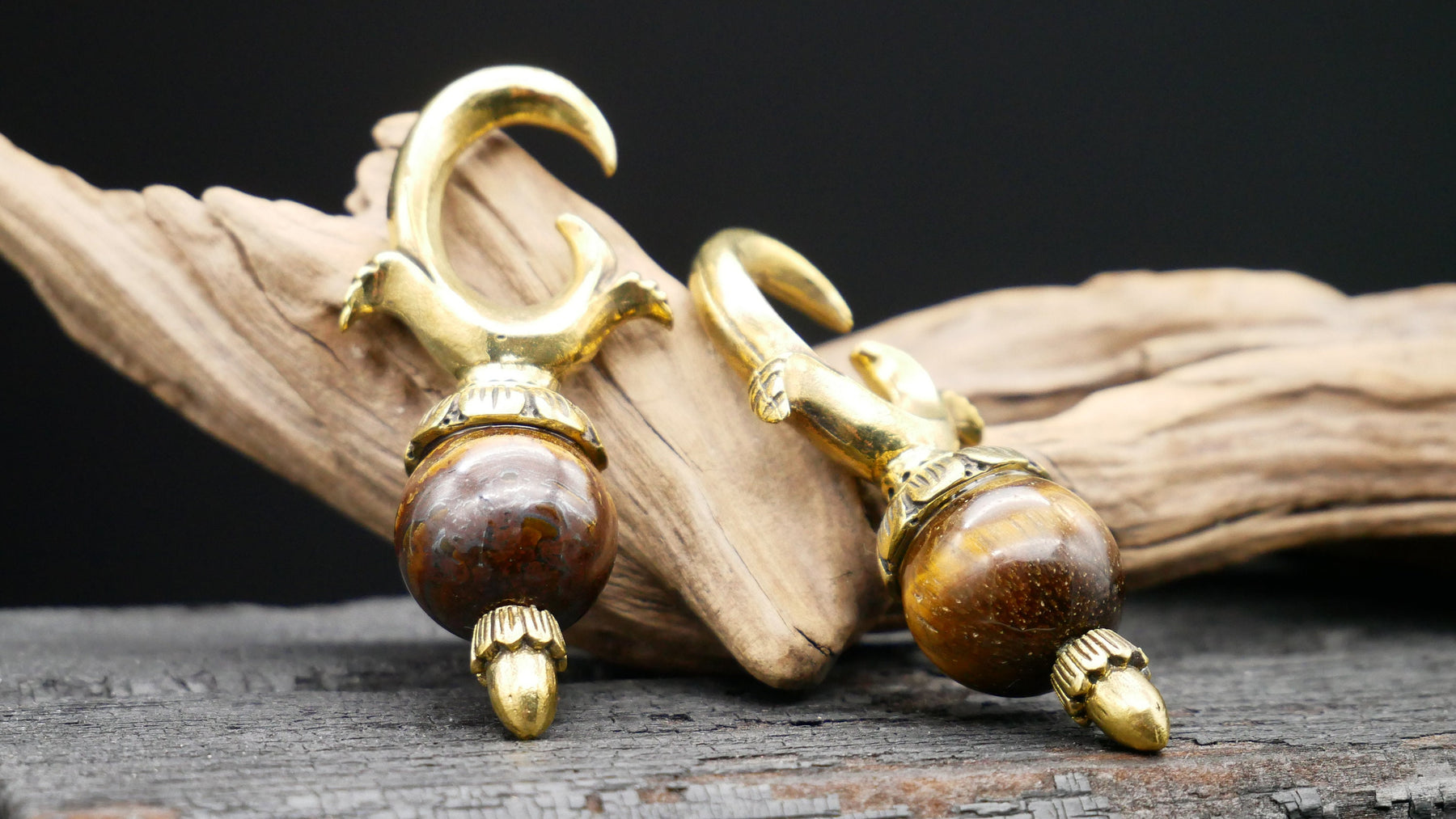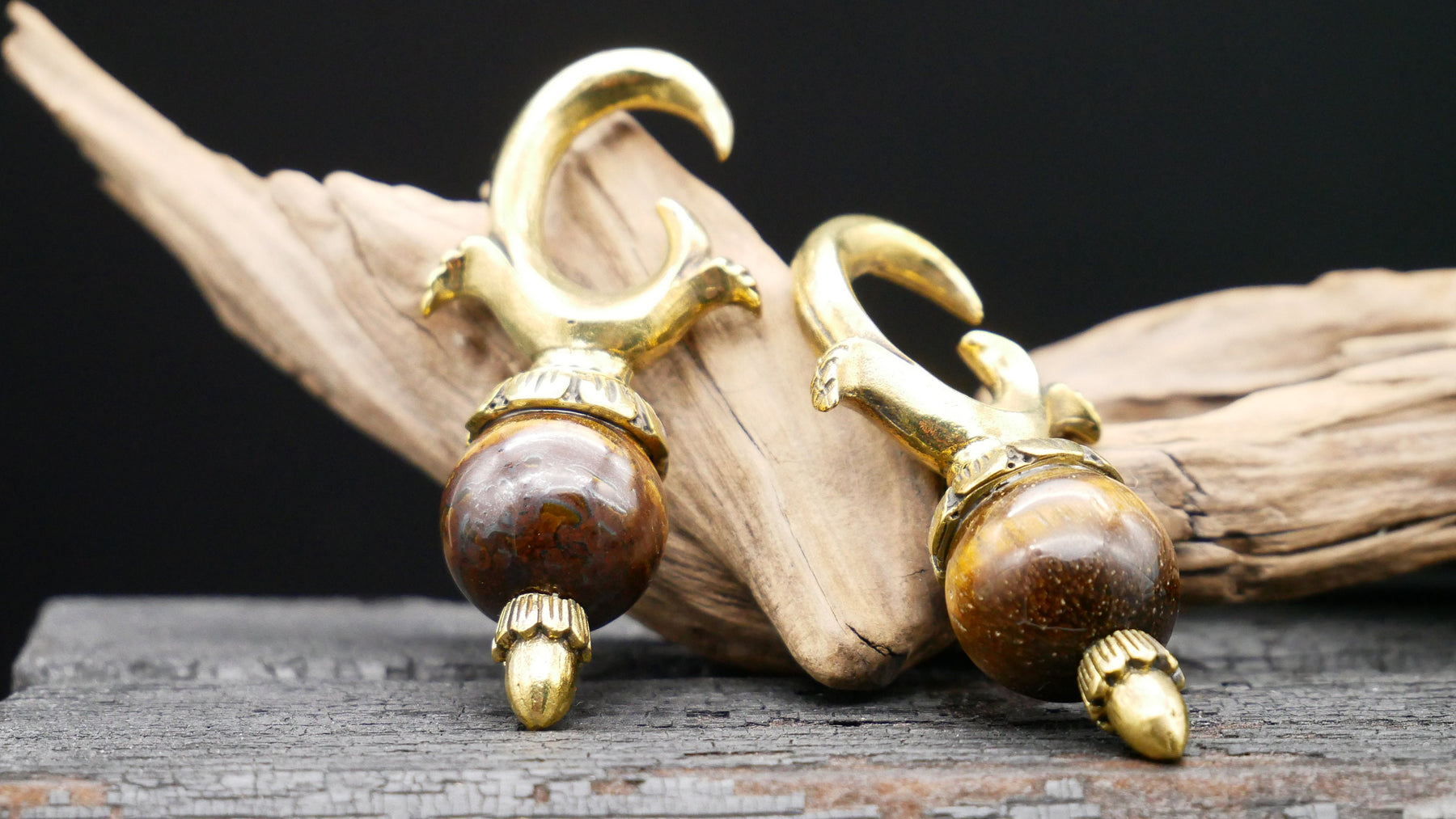Wunderschönes Ohrgewicht aus Messing und Tigerauge.