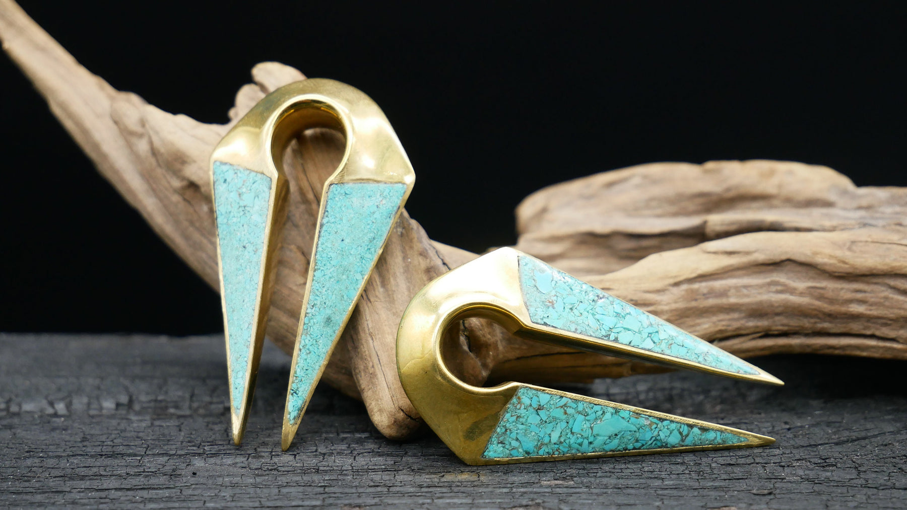 Wunderschönes Ohrgewicht aus Messing und Türkis.