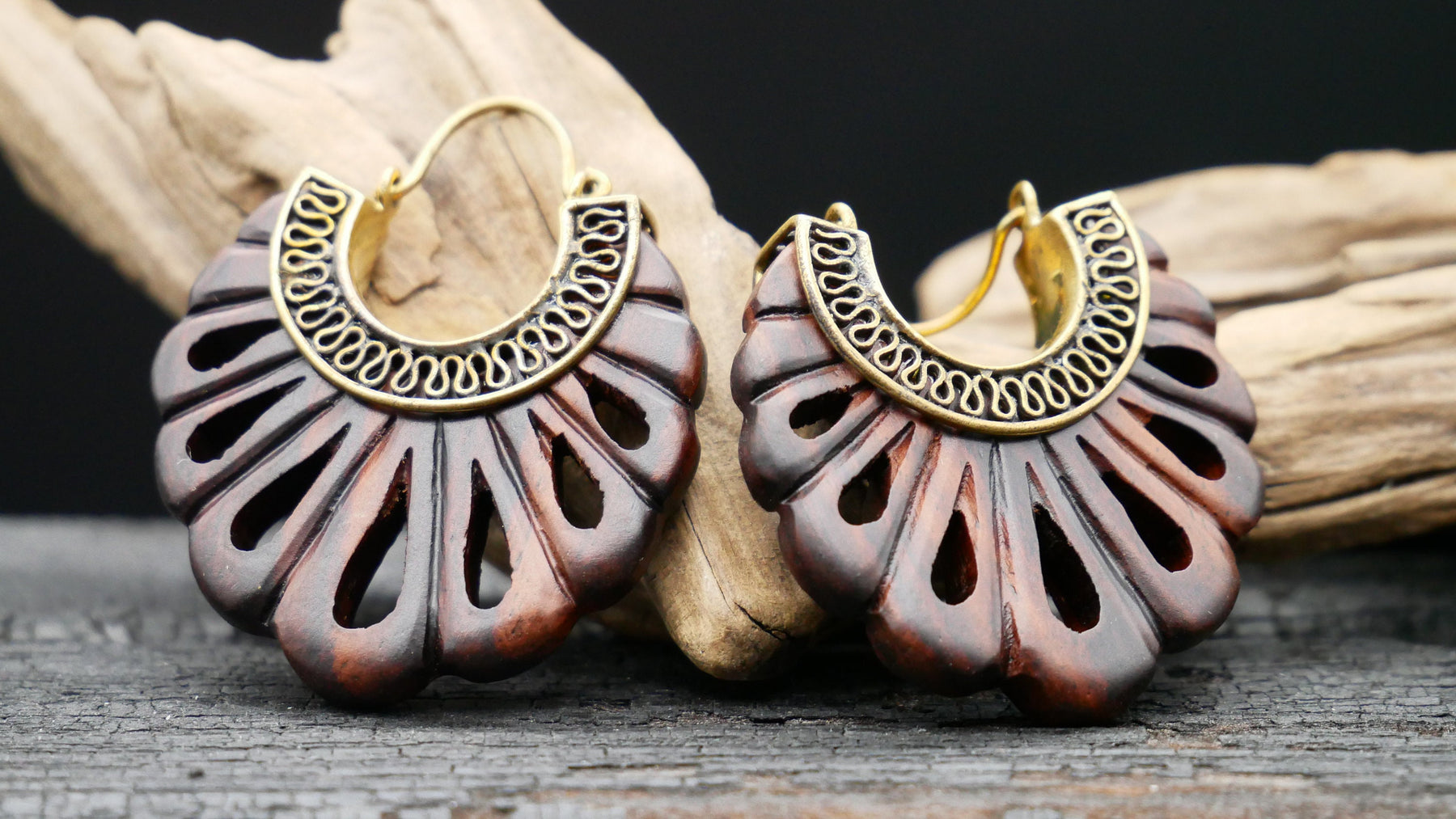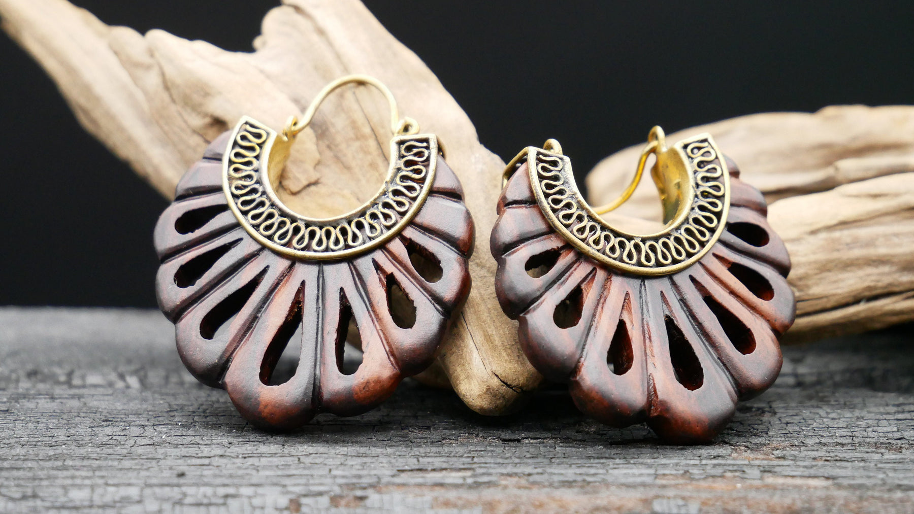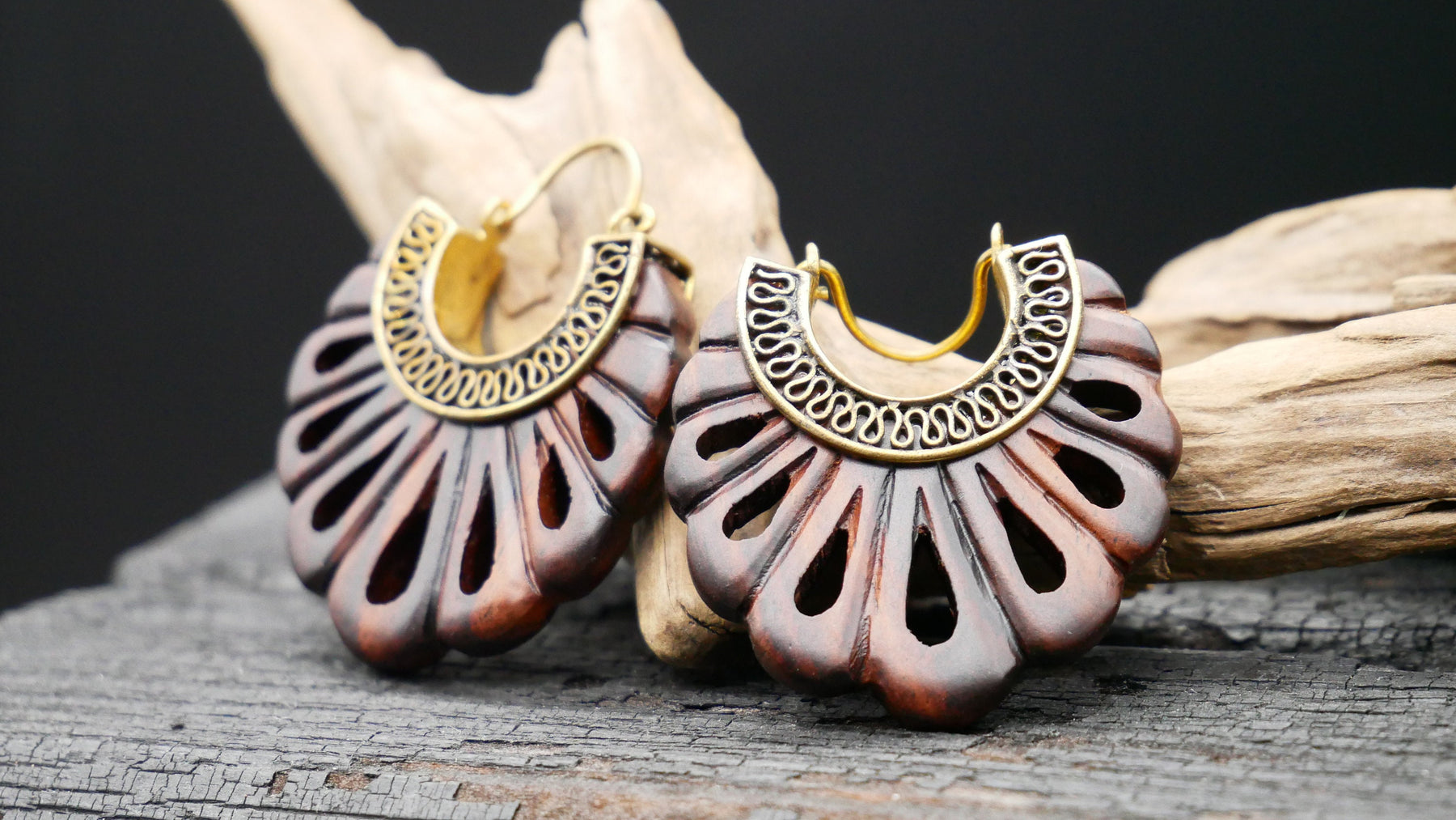 Ohrringe aus Holz und Messing Handarbeit - JJ-1