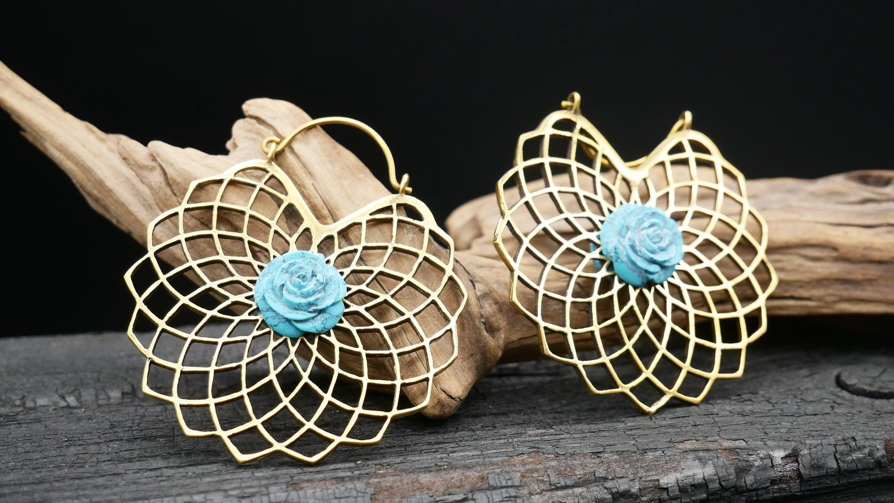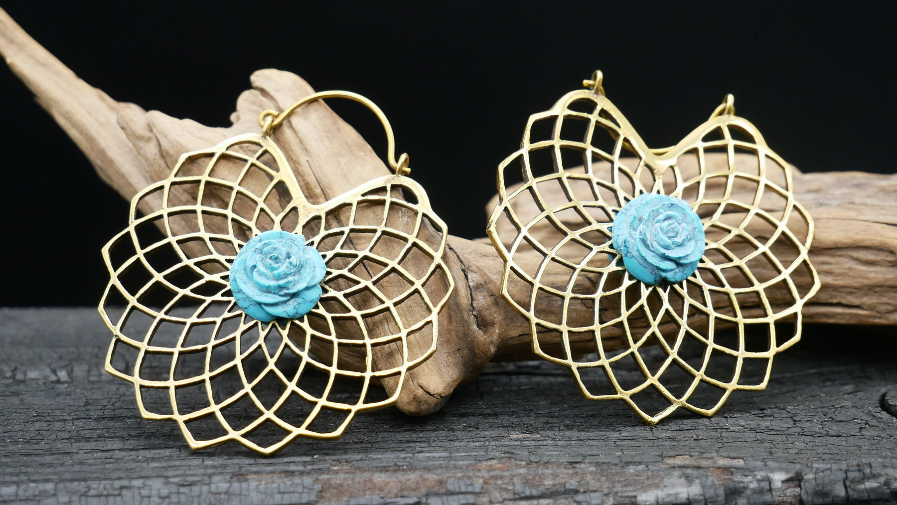 Wunderschöne, sauber verarbeitete Ohrringe aus Messing und Türkis.