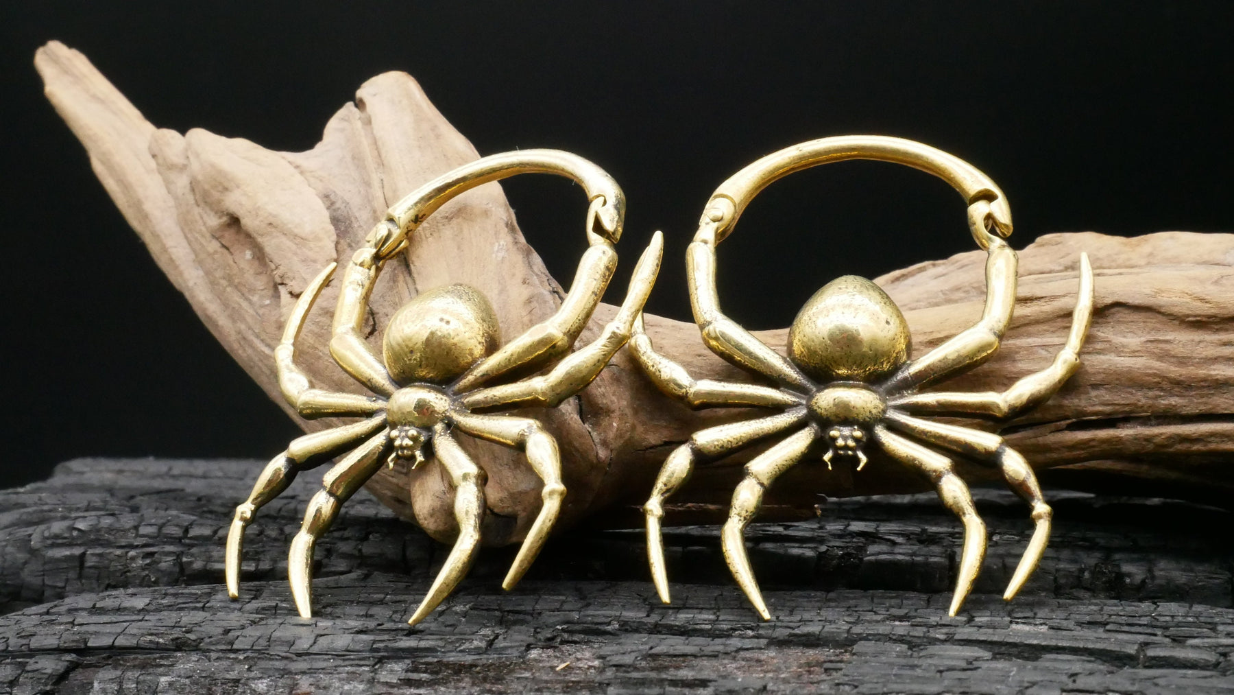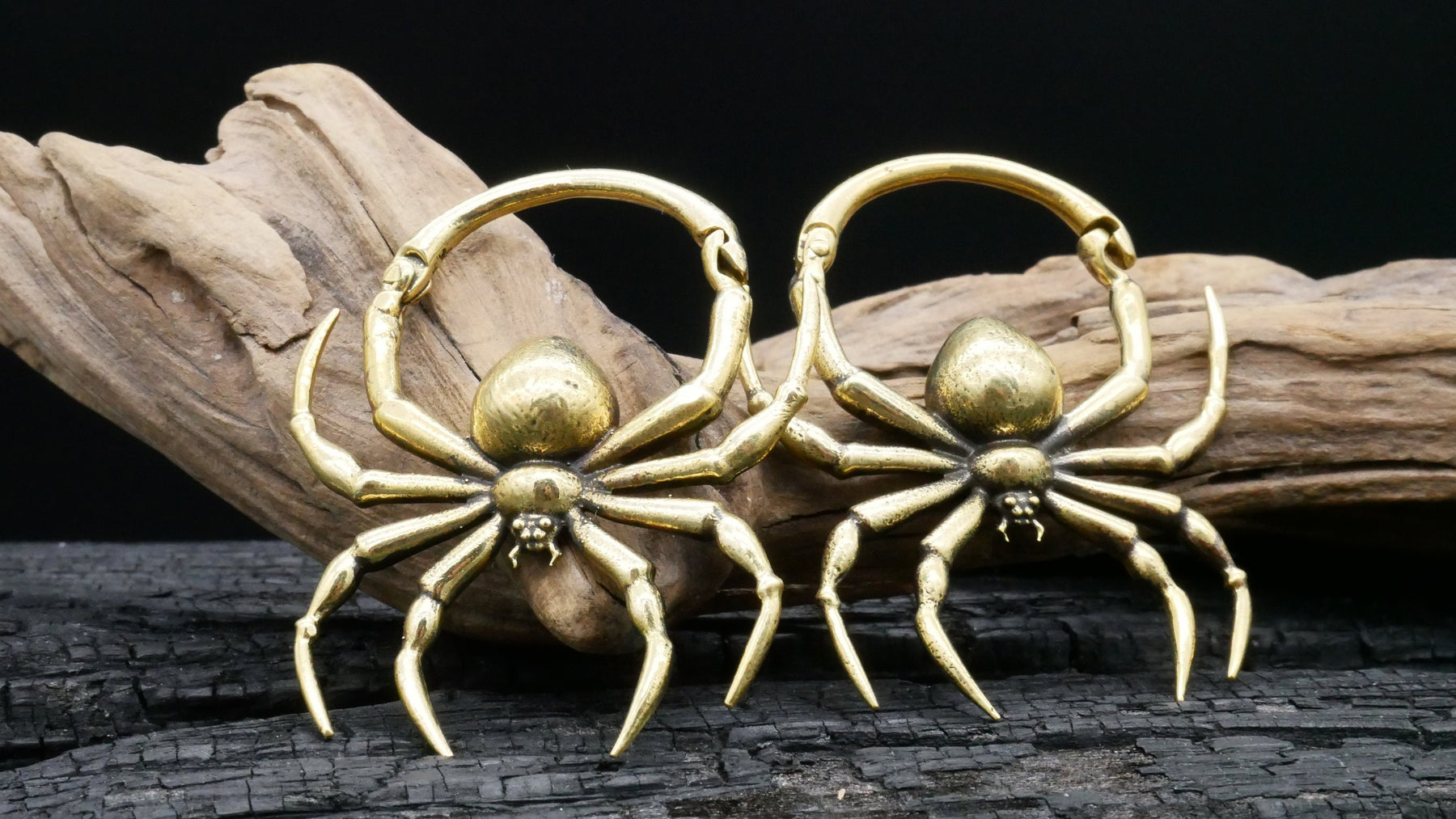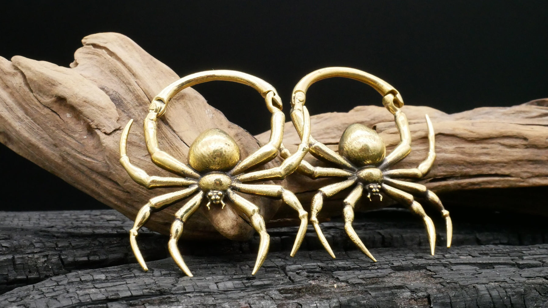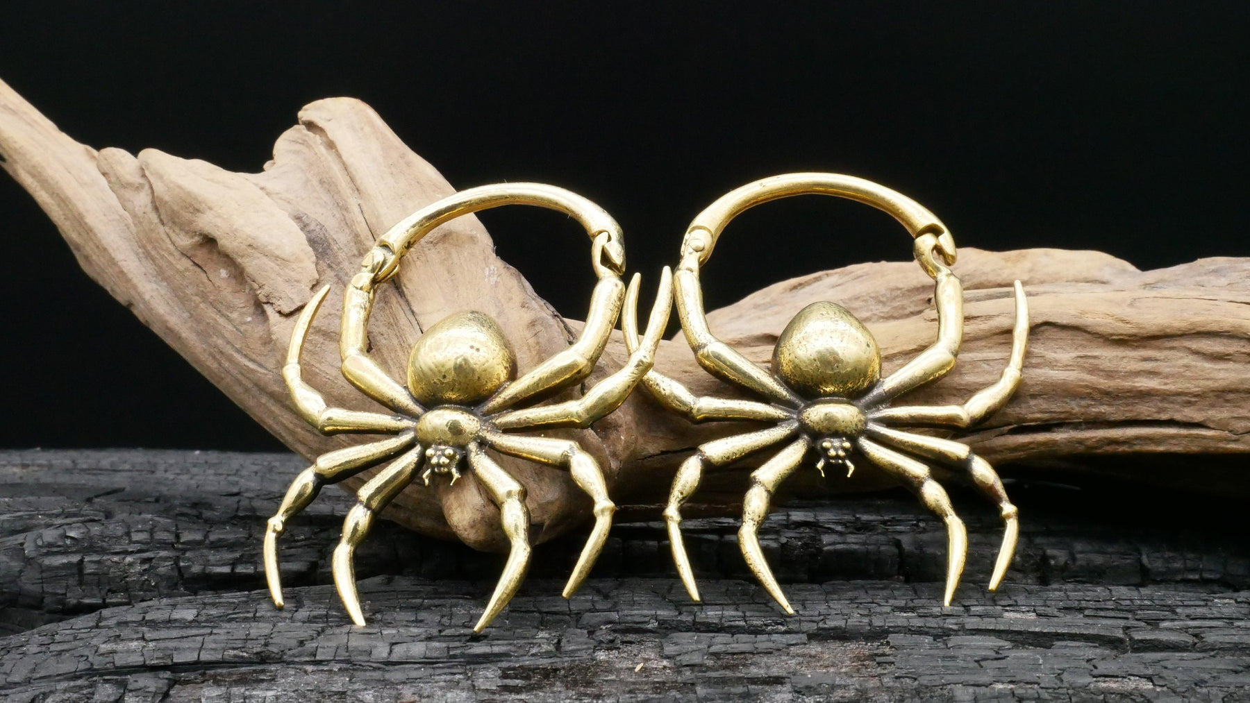 Diese goldfarbenen Ohrringe aus robustem Messing zeigen das faszinierende Motiv der Schwarzen Witwe. Der sichere Klickverschluss und die angenehme Dicke von 2,0 mm bieten Tragekomfort und Stabilität. Mit großzügigen Abmessungen von 4,0 cm in der Breite und 5,0 cm in der Höhe sind sie ein auffälliges Accessoire, das Eleganz und Raffinesse verkörpert. Ein Paar Ohrringe, das Ihren Look mit einem Hauch von Mystik und Stil vervollständigt.
