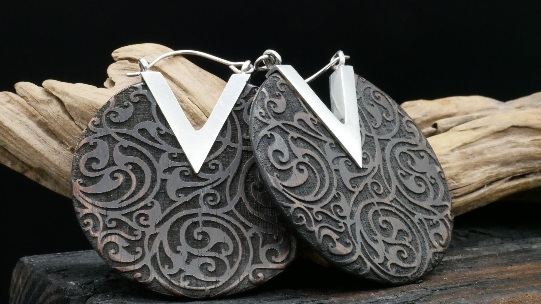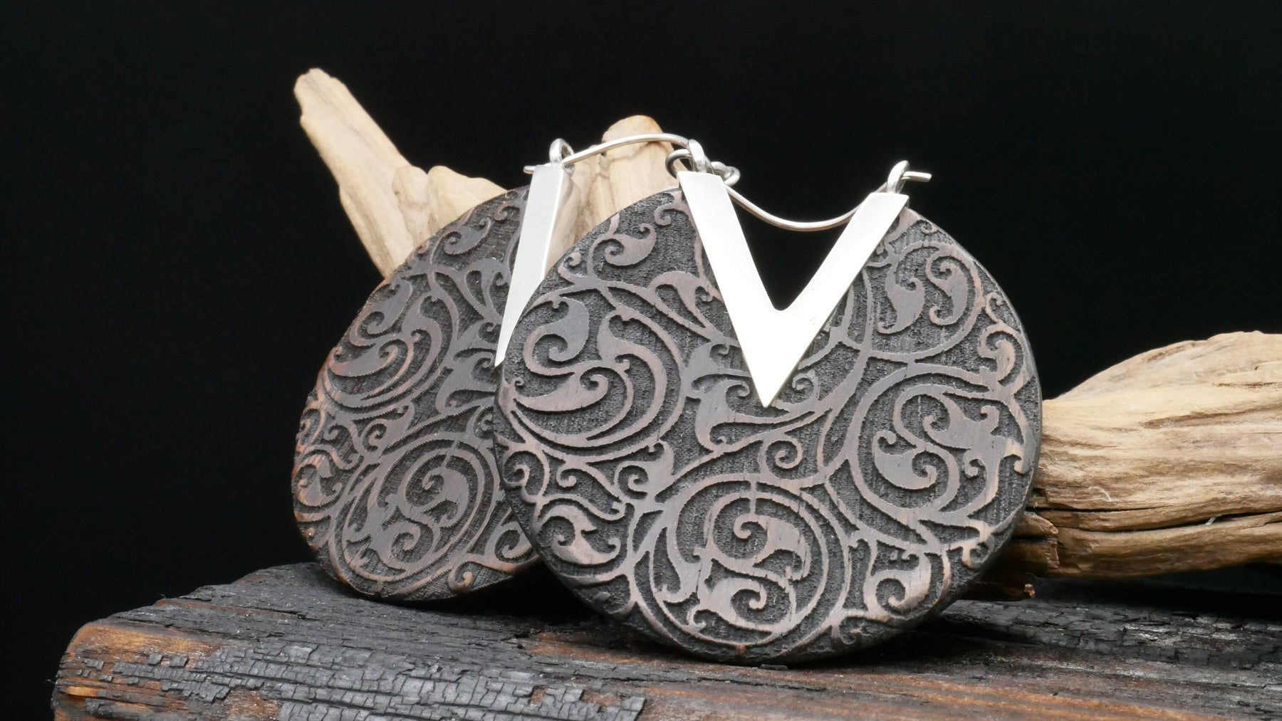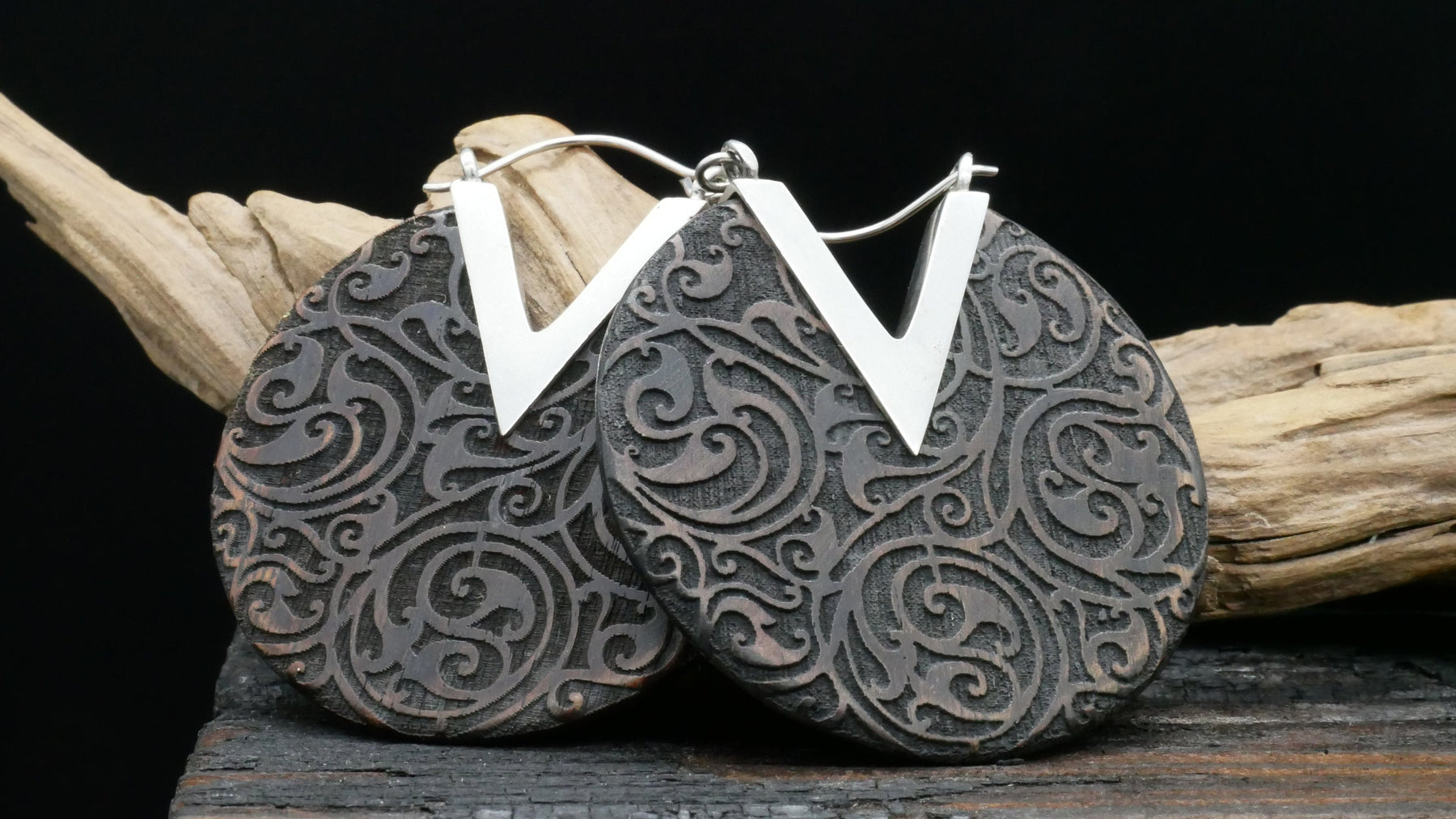 Ohrringe aus Holz und Silber mit Gravur - JJ-2
