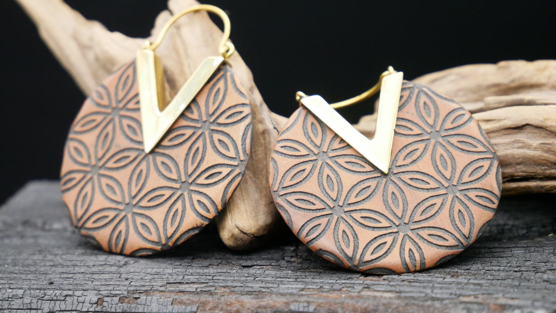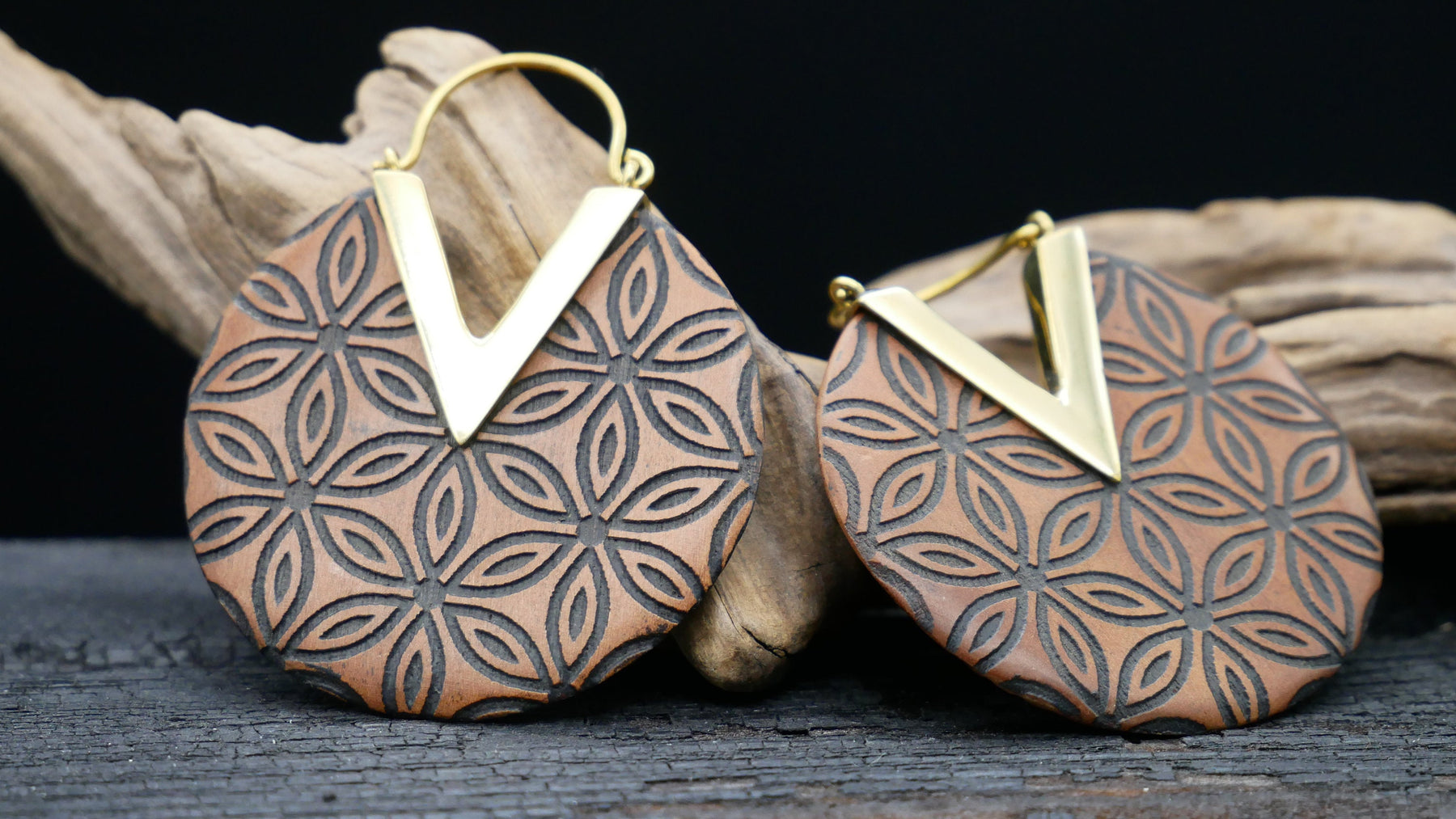Ohrringe aus Holz und Messing mit Gravur - JJ-1