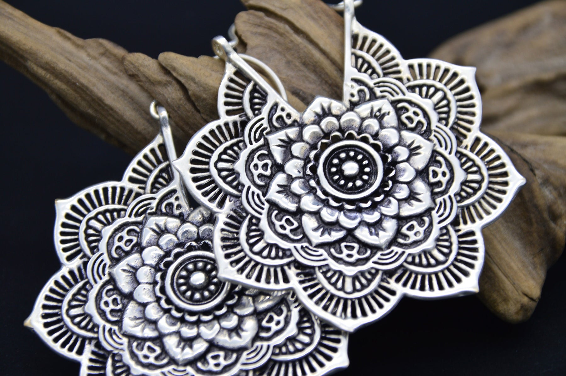 Diese wunderschönen Ohrringe bestehen aus versilbertem Messing. Es wird gleich zweimal mit 925er Sterlingsilber versilbert. Zum Abschluss wird eine klare Beschichtung hinzugefügt, um die Silberfarbe möglichst lange haltbar zu machen.
