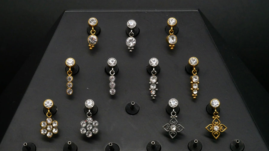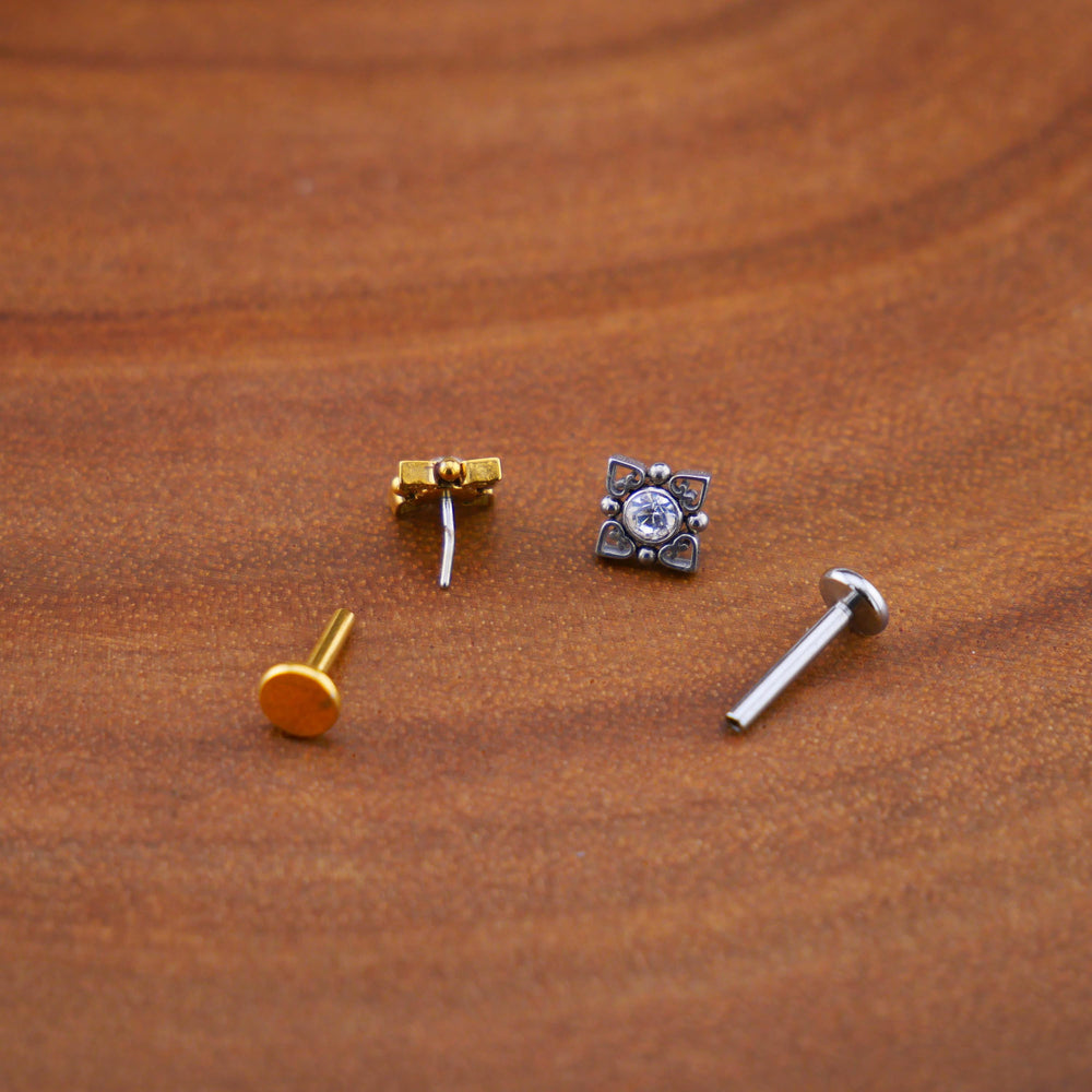 Unsere Ohrstecker mit Schraubverschluss bieten sicheren Halt und stilvolles Design. Sie eignen sich ideal für Ohrpiercings und können auch als Labret- oder Medusa-Stecker mit Gewinde getragen werden. Gefertigt aus hochwertigen Materialien wie Chirurgenstahl, Titan oder Messing überzeugen sie durch Hautfreundlichkeit, Langlebigkeit und angenehmen Tragekomfort. Ob schlicht, elegant oder mit Schmuckstein – hier findest du Schraubstecker für jeden Anlass.