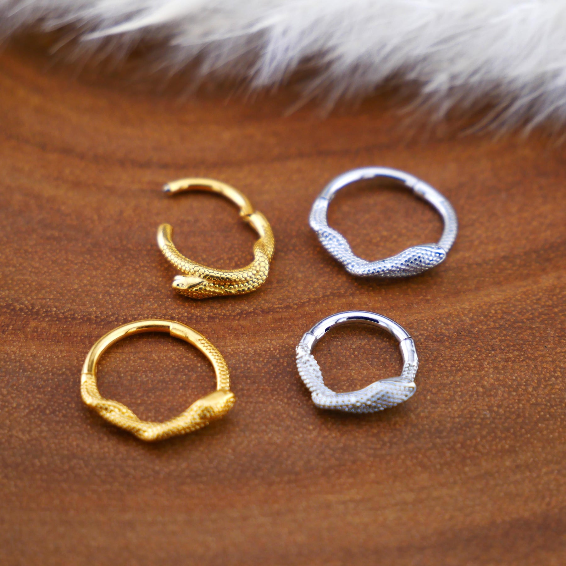 Ob für Conch, Septum, Helix, Daith oder andere Piercings - dieser Ring ist vielseitig einsetzbar und passt sich perfekt deiner Anatomie und deinem Stil an. Erhältlich in klassischem Silber oder elegantem Gold, mit einer Materialstärke von 1,2mm (16g) und wahlweise 8mm oder 10mm Innendurchmesser.