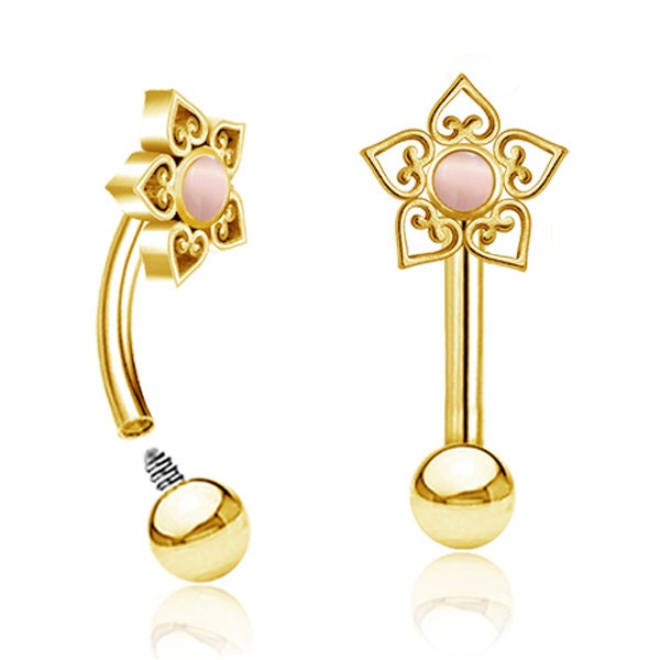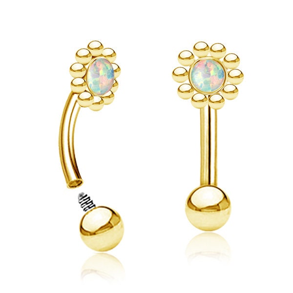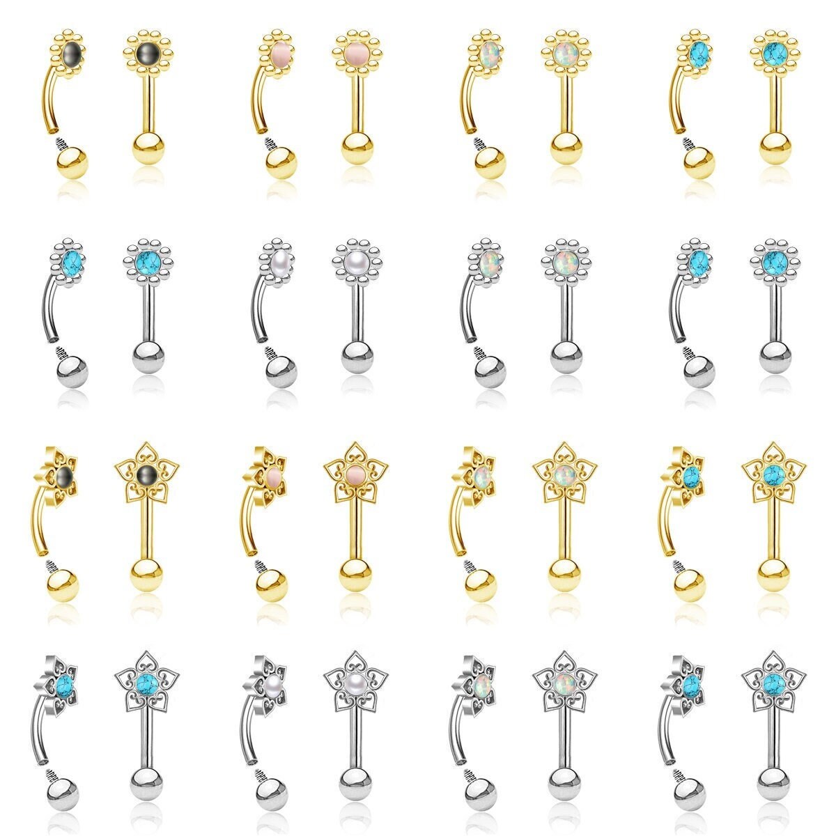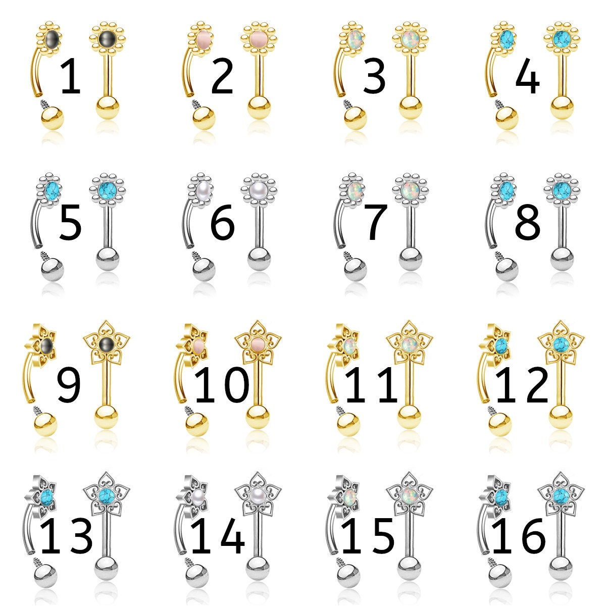 Entdecke den perfekten Ausdruck deines persönlichen Stils mit unserem atemberaubenden Curved Barbell Piercing mit funkelnden Schmucksteinen! Wähle aus einer Vielzahl von faszinierenden Farboptionen, darunter White Pear, Black Pearl, Türkis, Onyx, Rose Cat Eye, White Opal und Blue Opal, um deinen Look zu betonen. Der 1,2mm dicke (16g) Stab sorgt für Komfort und Sicherheit, während die zwei verfügbaren Längen, 6mm und 8mm, individuelle Anpassung ermöglichen. Die Verschlusskugel mit einem Durchmesser von 3mm bietet nicht nur ein einfaches Handling, sondern verleiht auch eine elegante Note. Wähle zwischen den edlen Varianten in Silber und Gold, um deinen ganz persönlichen Stil zu unterstreichen. Kreiere mit diesem Curved Barbell Piercing einen einzigartigen Look, der deine Persönlichkeit zum Strahlen bringt!