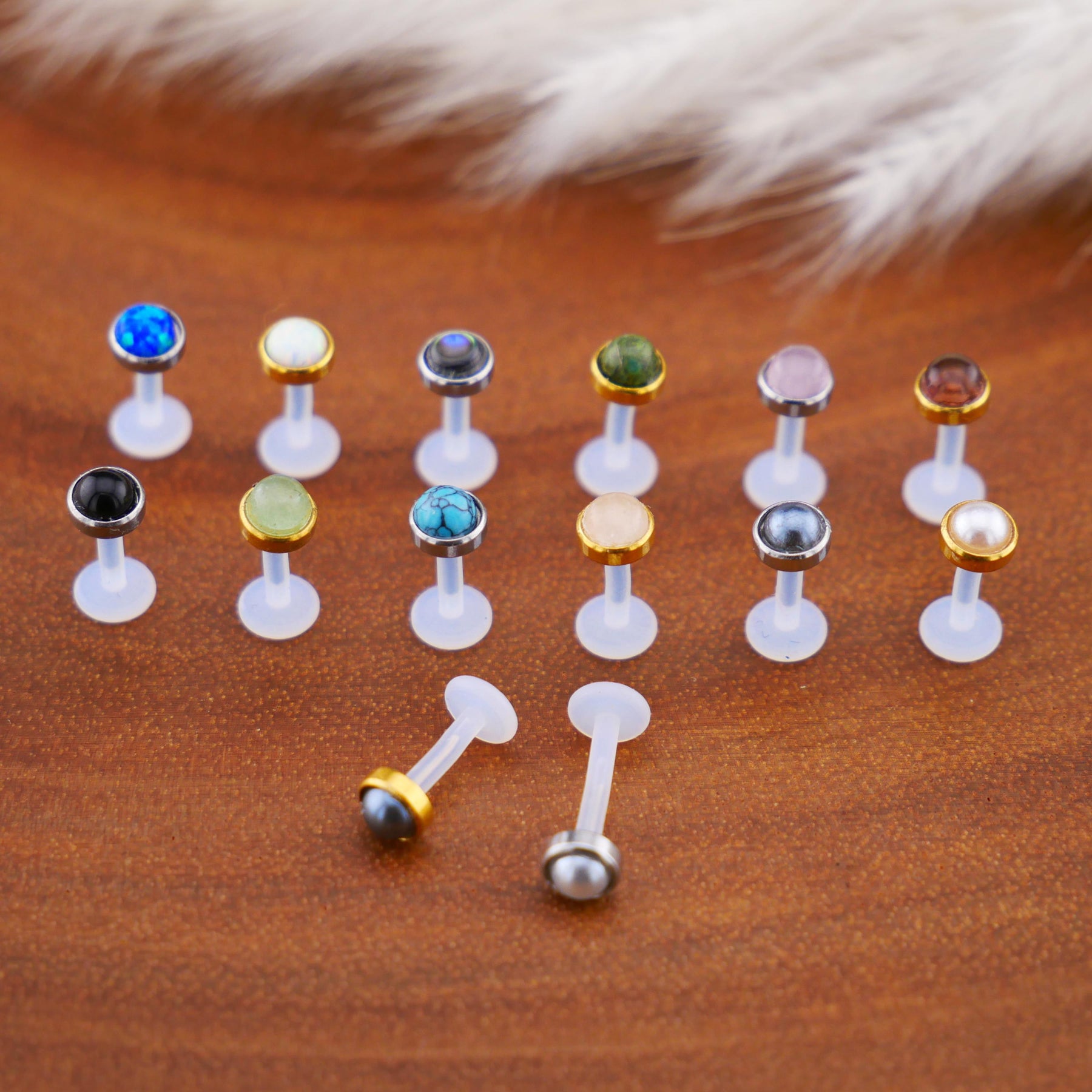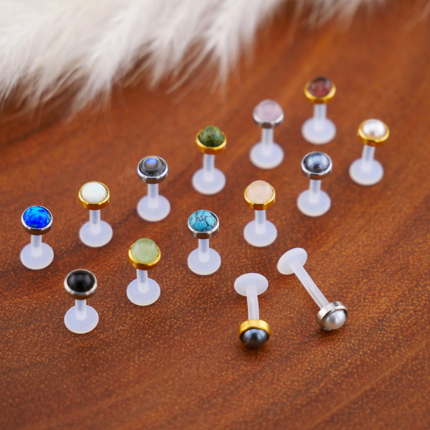 Elegantes Labret aus hochwertigem Chirurgenstahl, wahlweise in Schwarz, Silber oder Gold. Der feine Kopf (Ø 4mm) ist mit einem echten Schmuckstein verziert - perfekt für Lippenpiercings, Medusa oder Tragus!