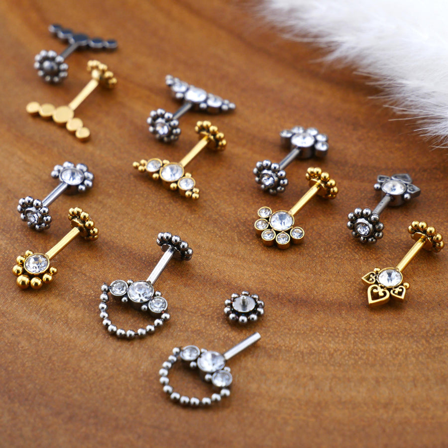 Unsere Vertical Helix Piercings sind ein moderner Eyecatcher für das Ohr. Sie verlaufen senkrecht durch den äußeren Knorpel der Ohrmuschel und setzen ein auffälliges Highlight. Gefertigt aus hochwertigen Materialien wie Chirurgenstahl, Titan oder Silber bieten sie Langlebigkeit, Hautverträglichkeit und vielfältige Designs. Perfekt für alle, die ihrem Ohrschmuck einen individuellen Charakter verleihen möchten.