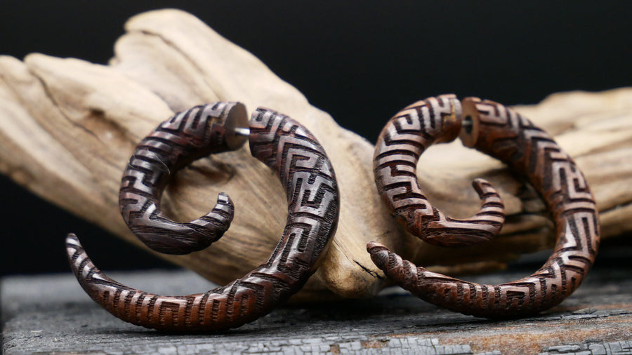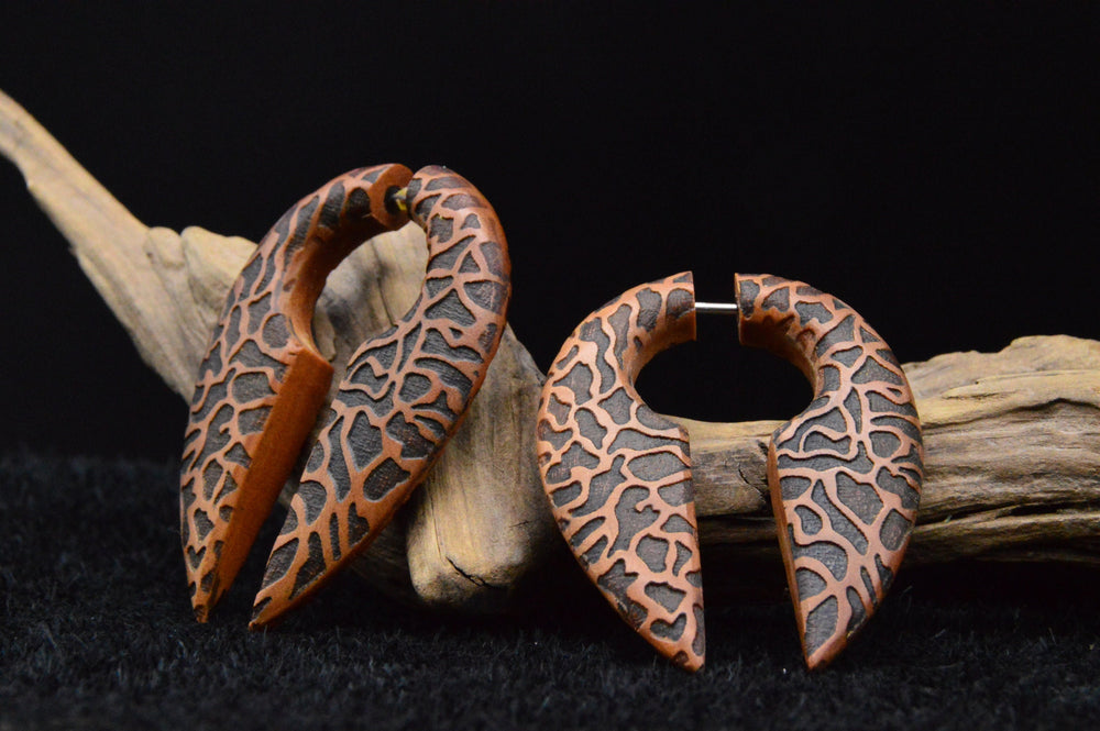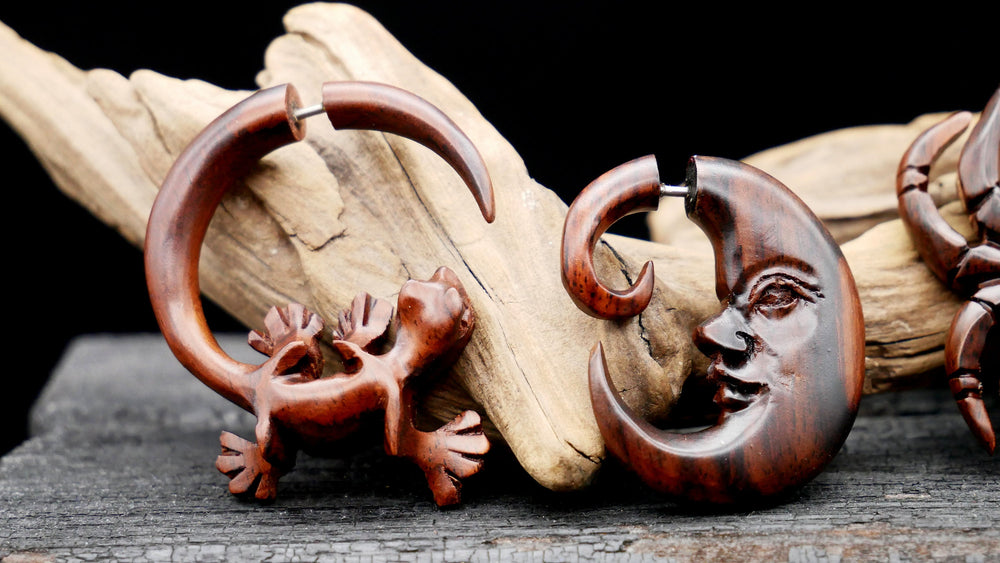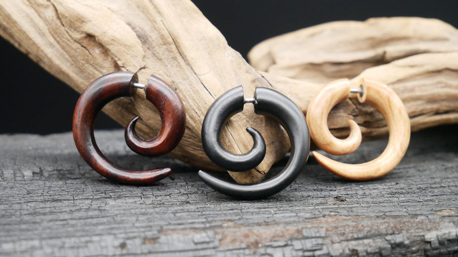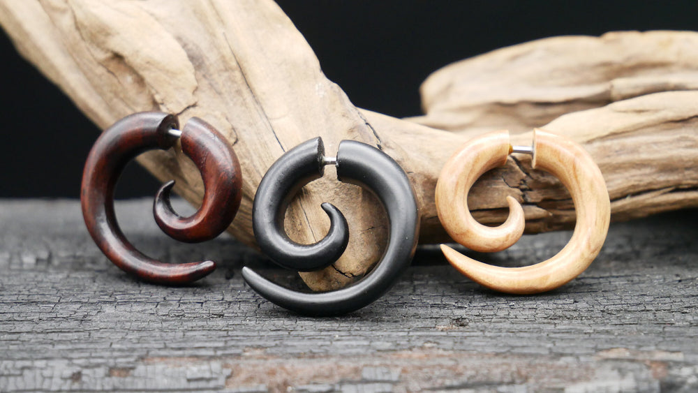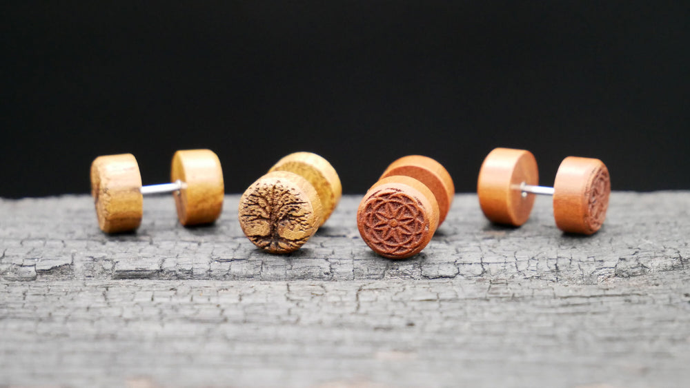 Unsere Fake Plugs vereinen das natürliche Design von Holz mit der Stabilität von Chirurgenstahl 316L. Mit einem 1,0 mm Pin zum Stecken oder praktischem Schraubgewinde eignen sie sich perfekt für alle, die den Look von Plugs lieben, aber kein gedehntes Ohr haben. Hautfreundlich, hochwertig verarbeitet und in verschiedenen Designs erhältlich – ideal für einen stilvollen Auftritt.