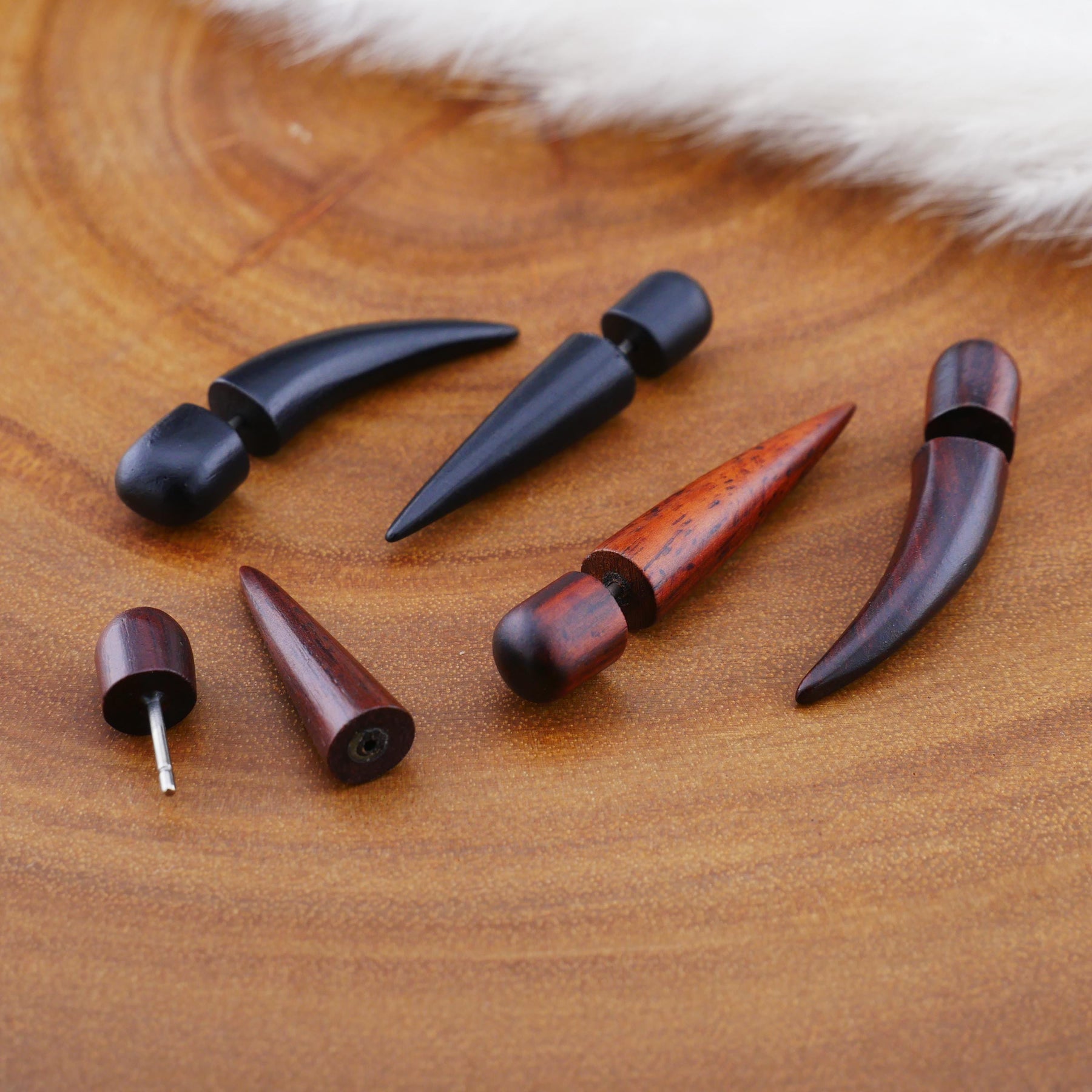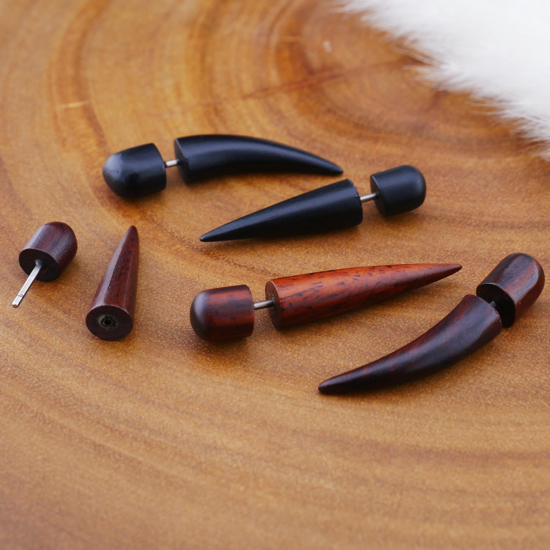 Kleine Piercings werden in schlichten, schwarzen Plastik- oder Papiertütchen geliefert, während mittelgroßer und großer Schmuck in edlen, schwarzen Faltschachteln verpackt wird.