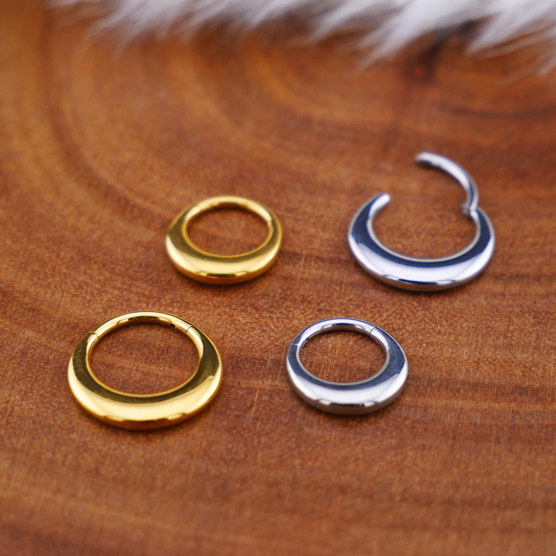 Unser Chirurgenstahl Piercing Ring ist der perfekte Begleiter für dein Piercing! Erhältlich in edlem Silber oder Gold, überzeugt er nicht nur durch seine hochwertige Qualität, sondern auch durch sein modernes Design. Mit einer Stärke von 1,2 mm (16g) und zwei praktischen Größen (Innendurchmesser 8mm oder 10mm) passt er sich ideal deinen Bedürfnissen an. Ob im Alltag oder für besondere Anlässe - dieser Piercing Ring bringt deinen Look auf das nächste Level!
