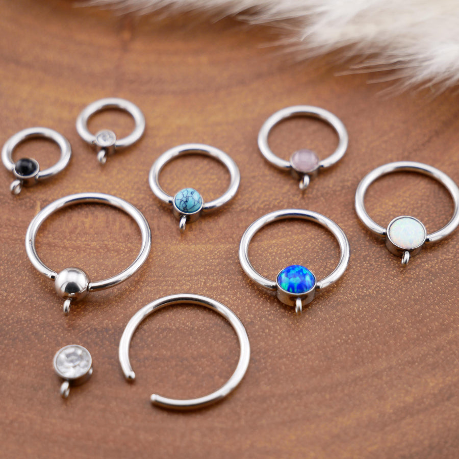 BCR Piercing-Ring Silber Schmuckstein und DIY-Öse 1,2mm 16g - 1L/14