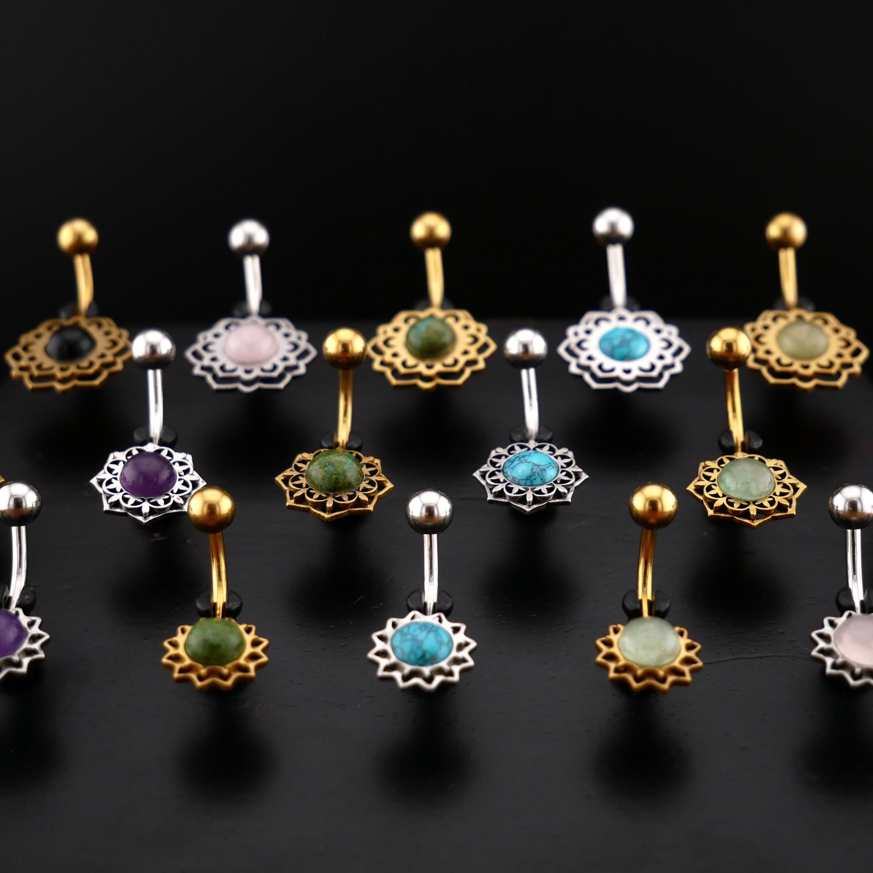 Elegante Bauchnabelpiercings in drei stilvollen Designs - wahlweise in Gold- oder Silberoptik. Jedes Stück ist mit einem funkelnden Schmuckstein verziert und bringt so individuellen Glanz in jedes Outfit.