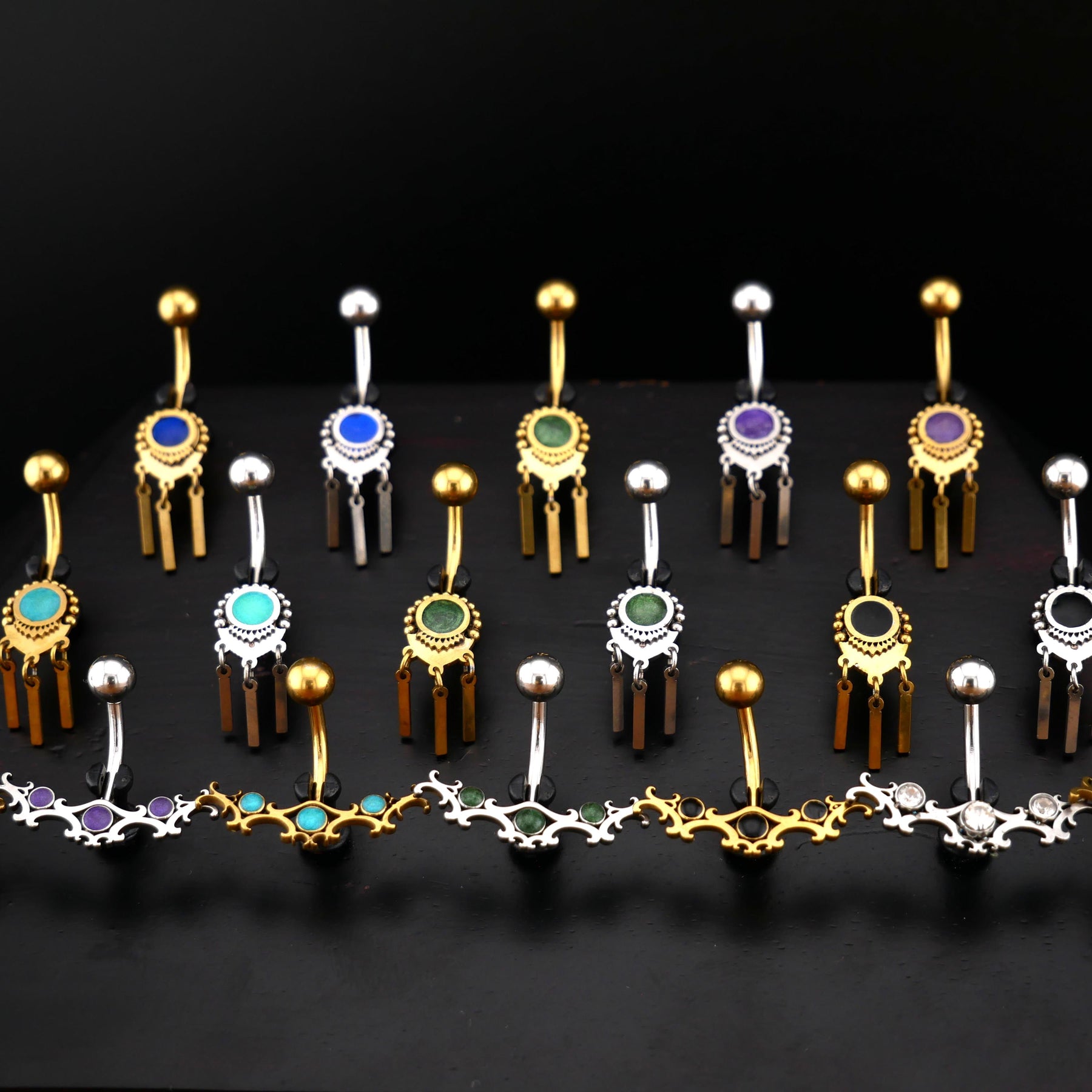 Kleine Piercings werden in schlichten, schwarzen Plastik- oder Papiertütchen geliefert, während mittelgroßer und großer Schmuck in edlen, schwarzen Faltschachteln verpackt wird.