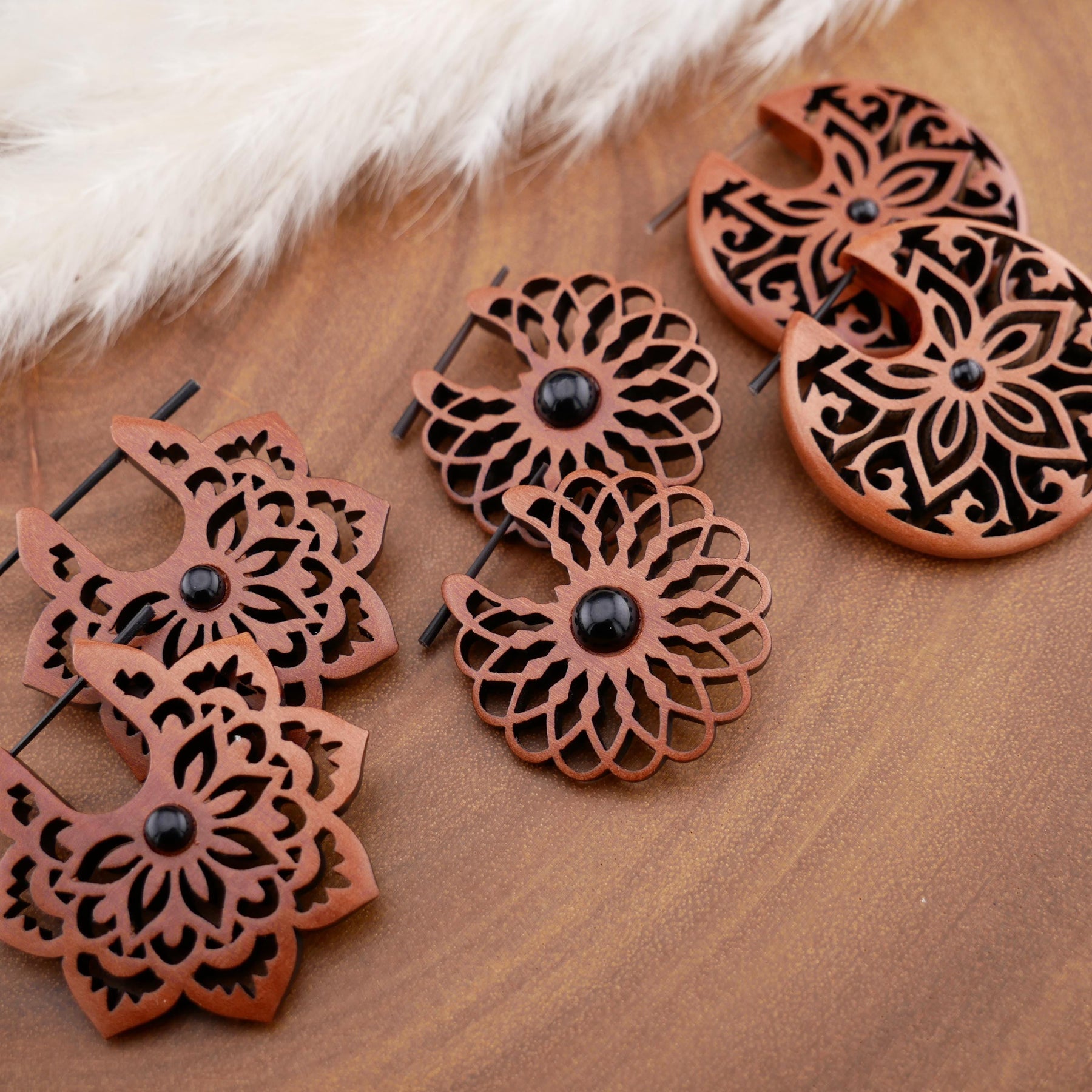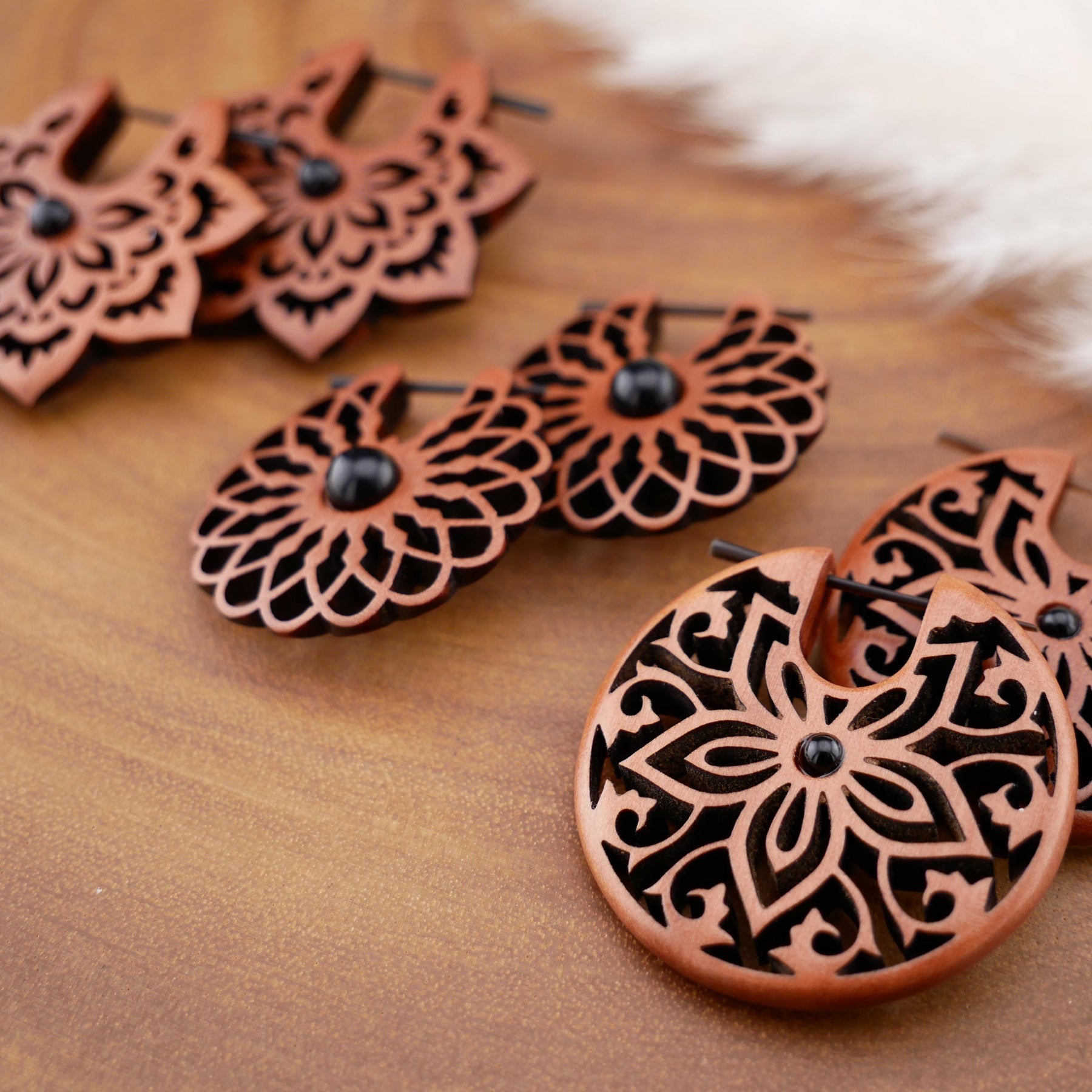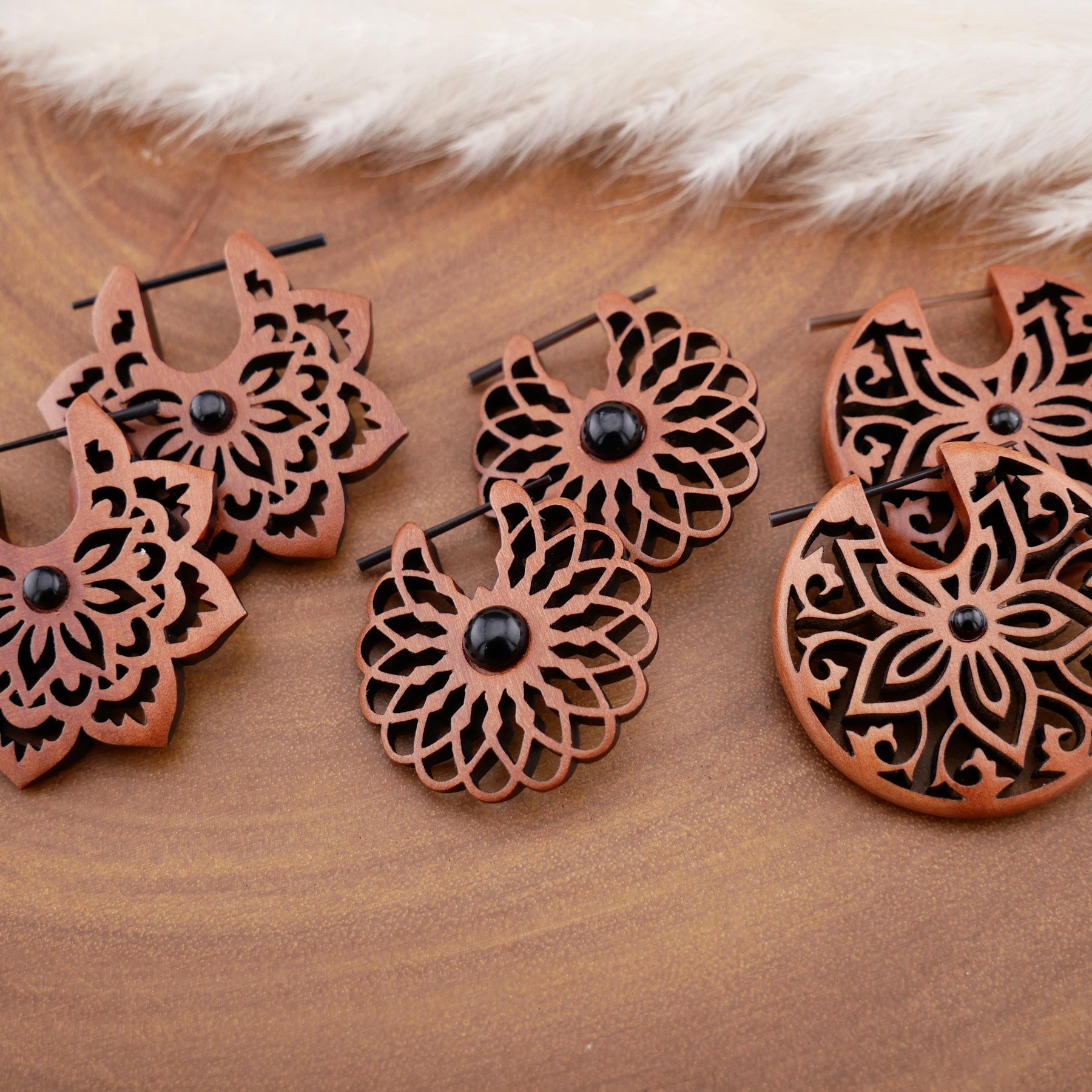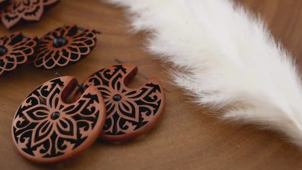 Paar Ohrringe aus Sawo Wood - O3