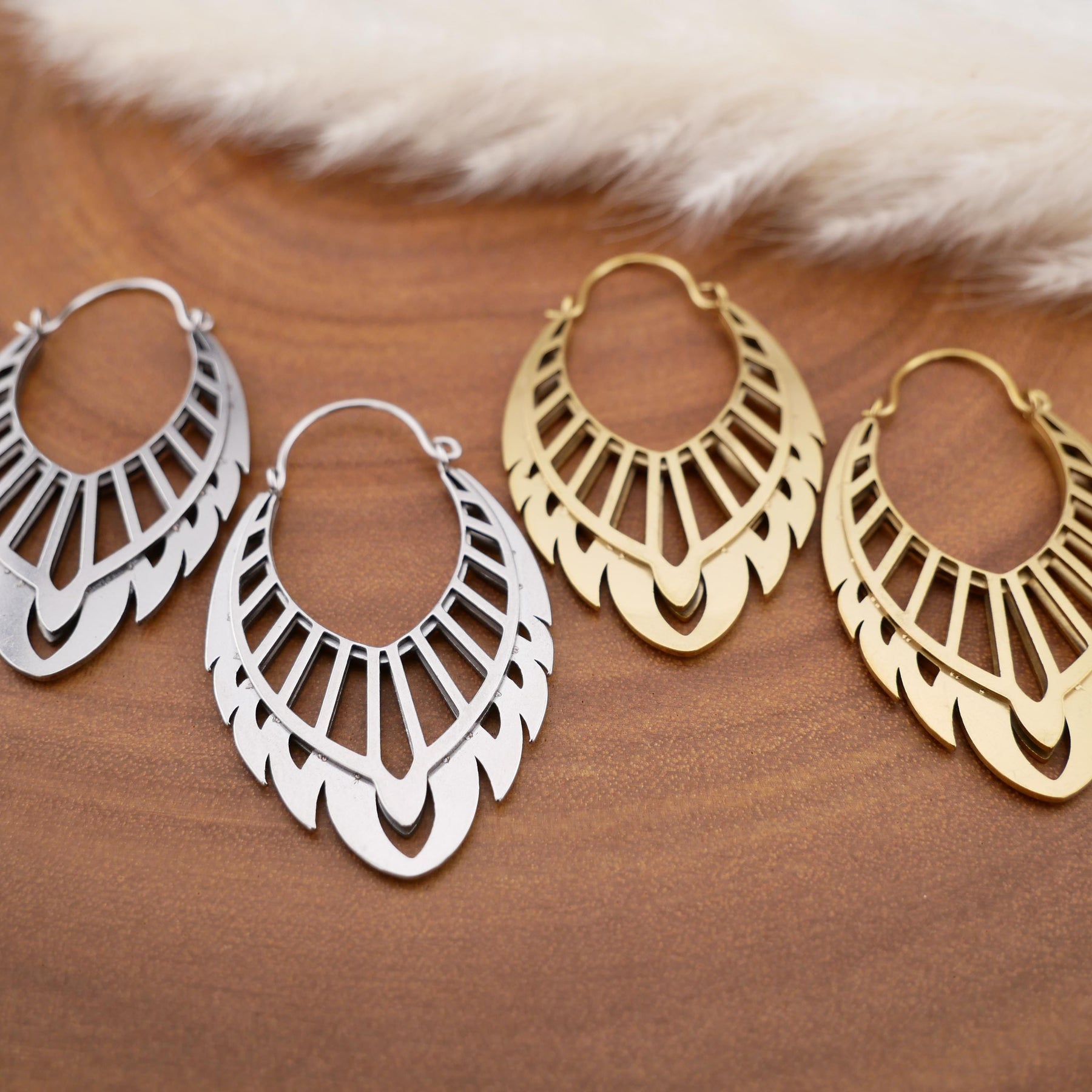 Schlichte, moderne Ohrringe mit 30mm Breite und 51mm Höhe. Das minimalistische, geometrisch inspirierte Design passt zu jedem Outfit. Der feine 1mm Bügel sorgt für angenehmen Tragekomfort. Wird als Paar verkauft.