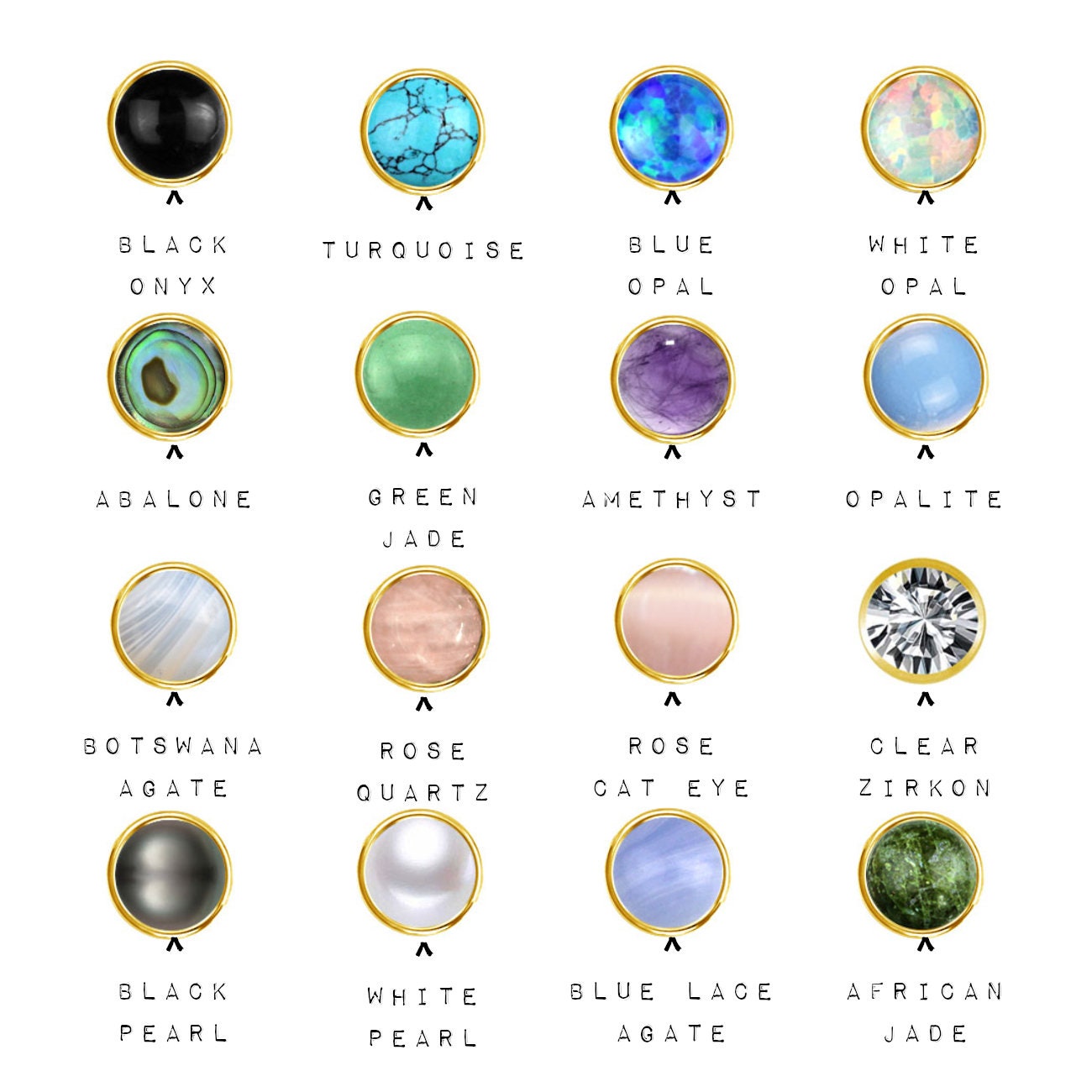 Schmuckstein: White Opal, Blue Opal, Black Onyx, Türkis, Amethyst, Green Jade, Rosenquraz