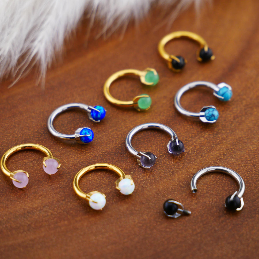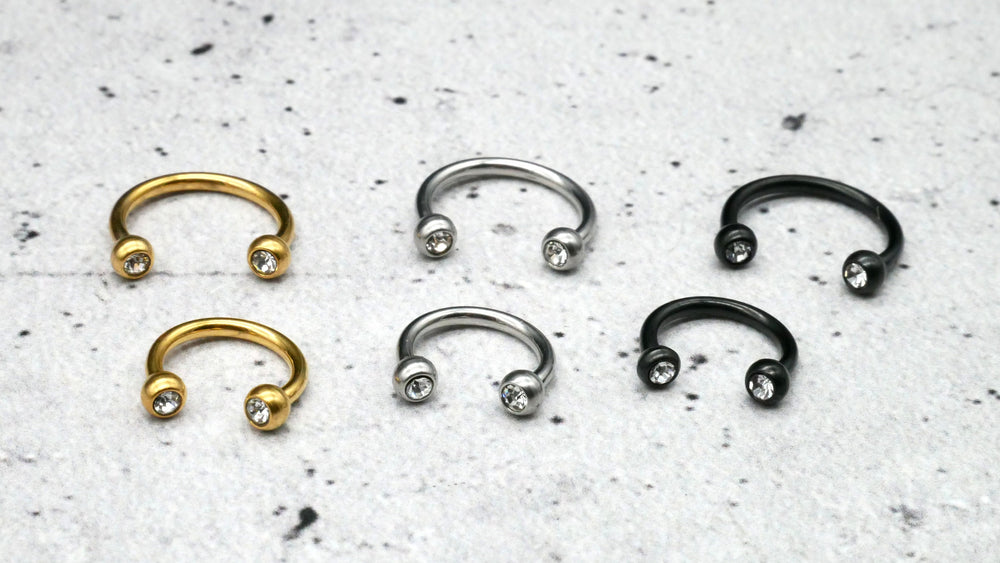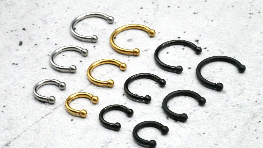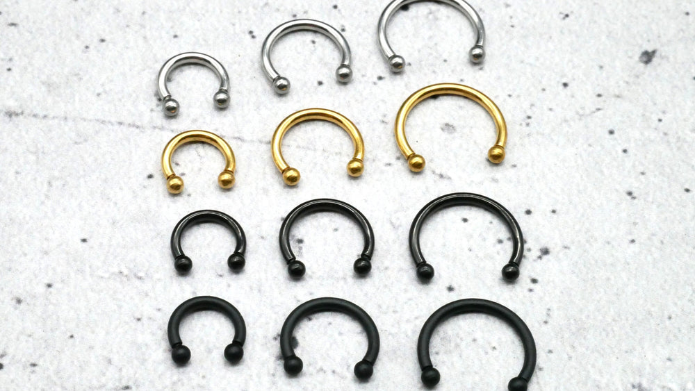 Unsere Circular Barbells (Horseshoe Piercings) sind echte Klassiker und vielseitig einsetzbar. Die halbkreisförmigen Ringe mit abschraubbaren Kugeln eignen sich perfekt für Septum, Ohr, Augenbraue oder Lippen. Gefertigt aus hochwertigen Materialien wie Chirurgenstahl, Titan oder Silber sind sie langlebig, hautfreundlich und in vielen Größen erhältlich – ideal für ein individuelles Styling.