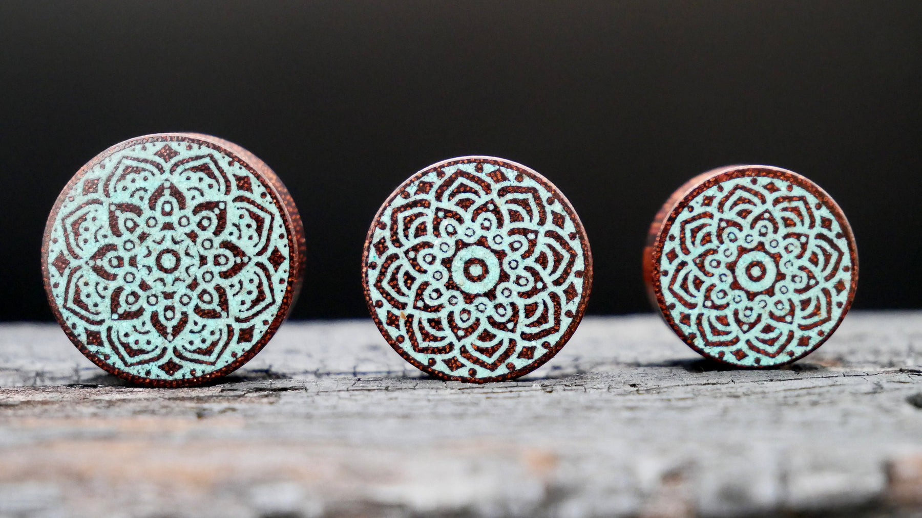 Die warmen Nuancen des Amelanchier Holzes verschmelzen harmonisch mit dem türkisen Mandala Blumen Druck, der dem Plug eine lebendige Ästhetik verleiht. Bitte beachte, dass Farbton und Musterung variieren können, was jedes Stück zu einem individuellen Kunstwerk macht.