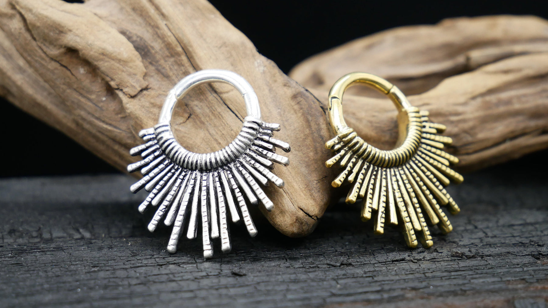 Kleine Piercings werden in schlichten, schwarzen Plastik- oder Papiertütchen geliefert, während mittelgroßer und großer Schmuck in edlen, schwarzen Faltschachteln verpackt wird.