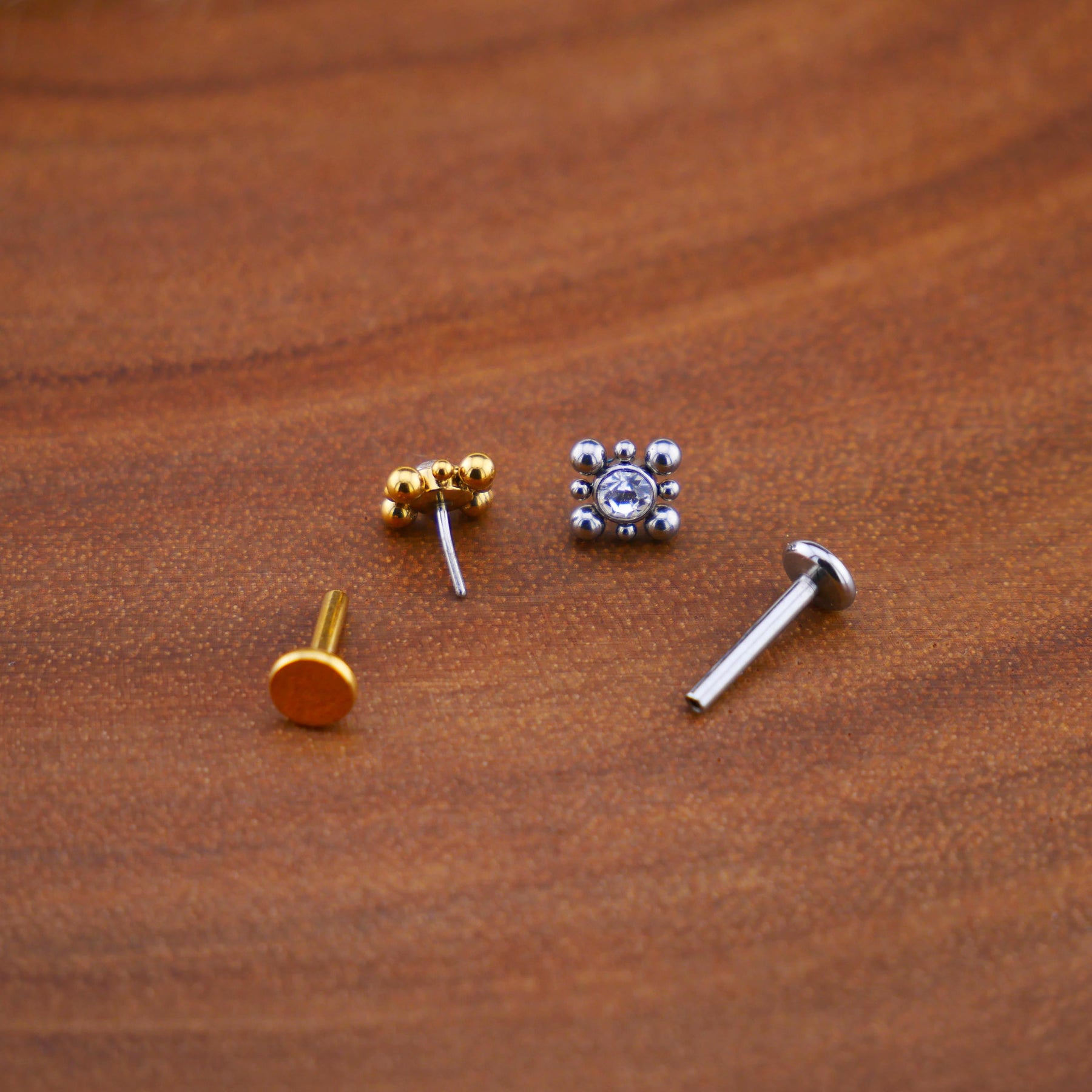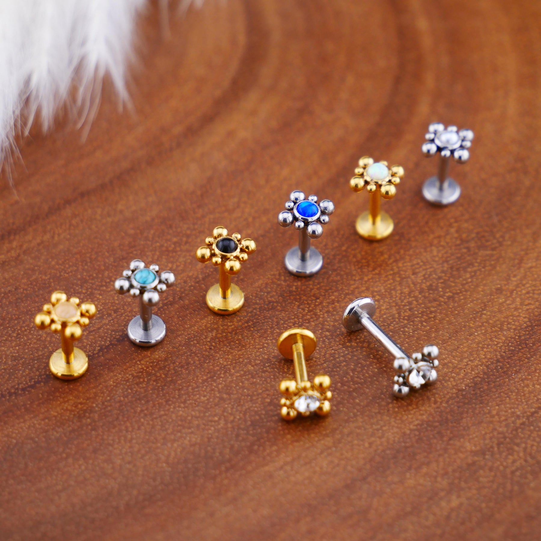 Push-Fit Piercing Labret aus Chirurgenstahl und Schmuckstein - 1P/08