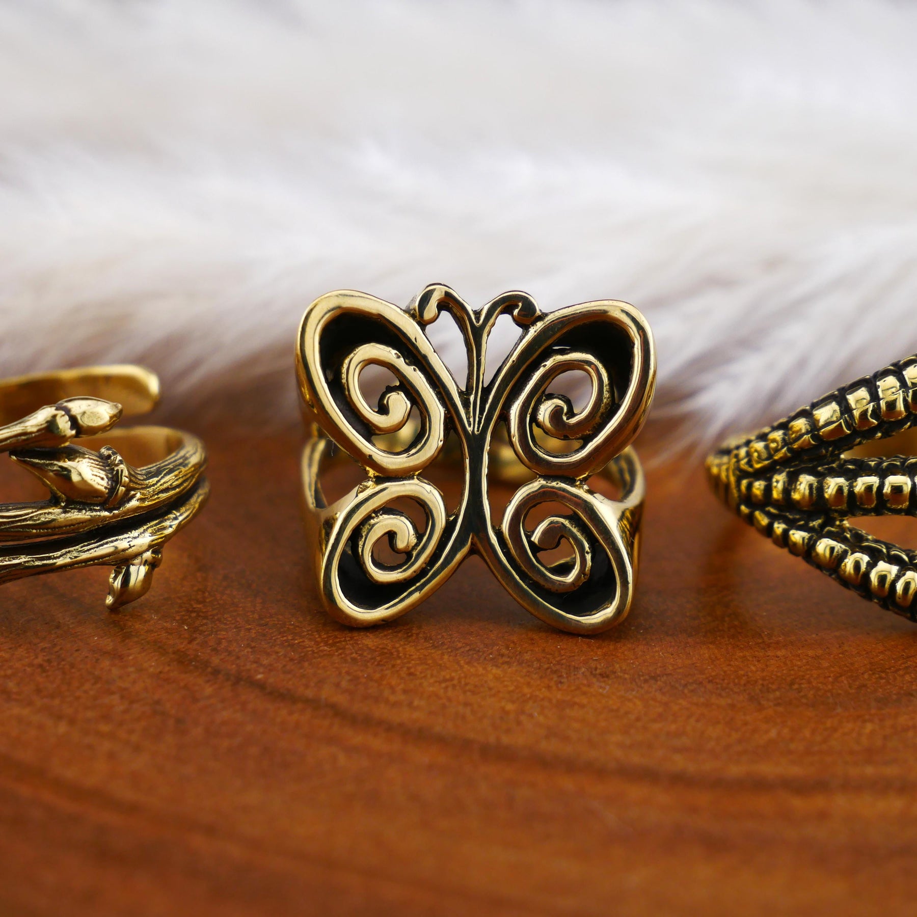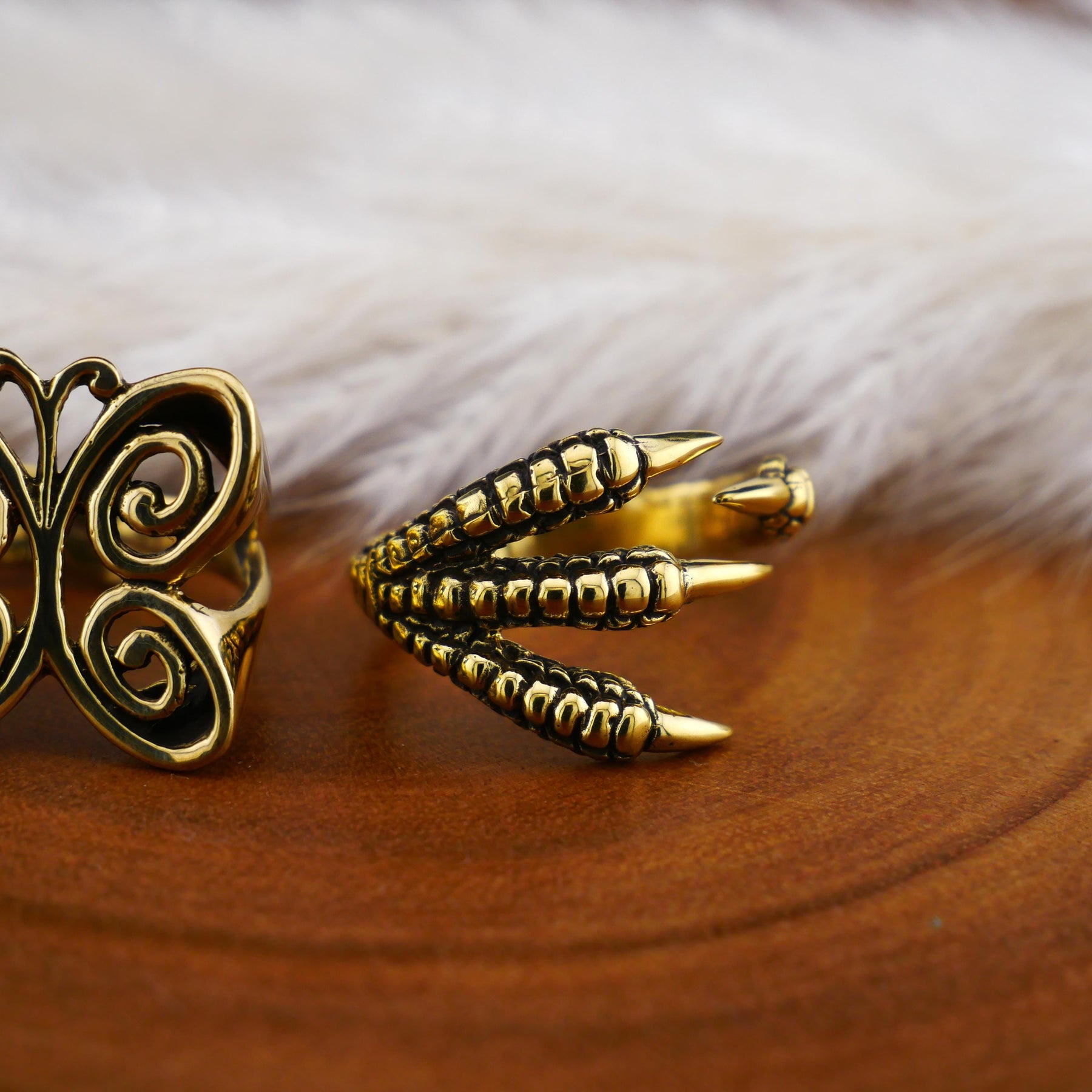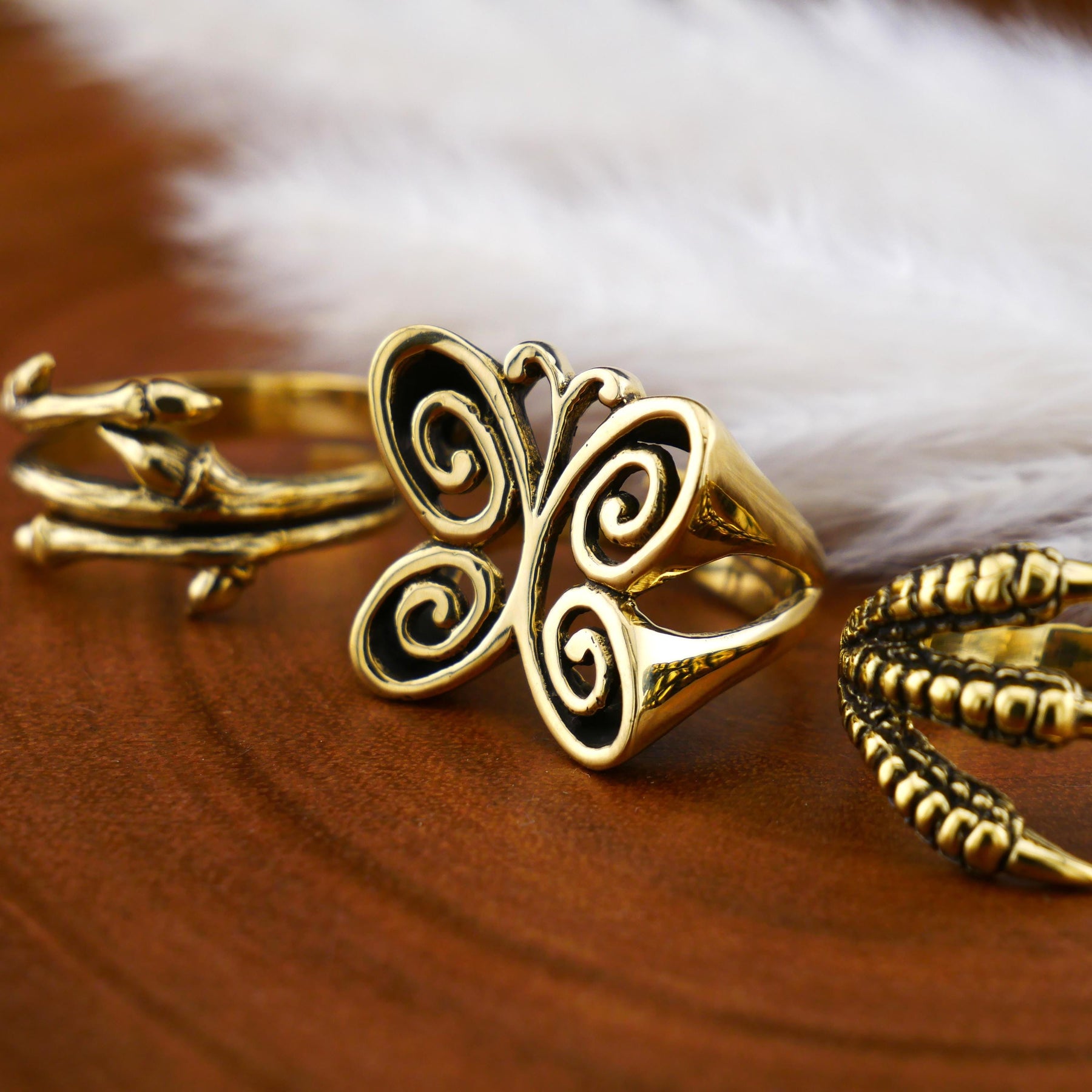 Dieser besondere Ring aus Messing verleiht deinem Look einen einzigartigen Touch. Du kannst zwischen drei faszinierenden Motiven wählen. Der Ring ist im Unisize erhältlich und passt sich perfekt an. Ein stilvoller Hingucker für jeden Anlass!